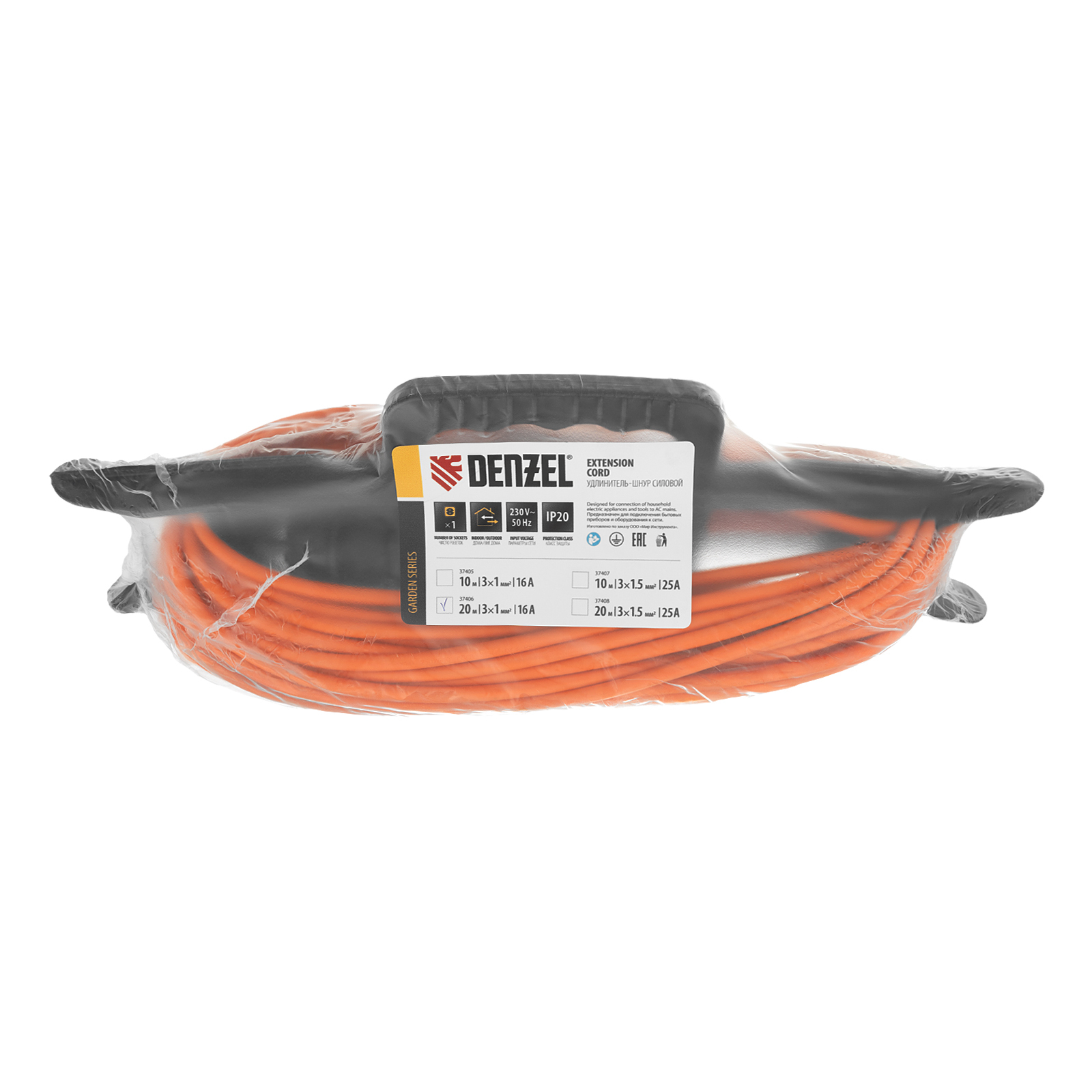 Удлинитель-шнур силовой Garden Series, ПВС, 20м, 1 розетка 3 x 1 мм, Denzel