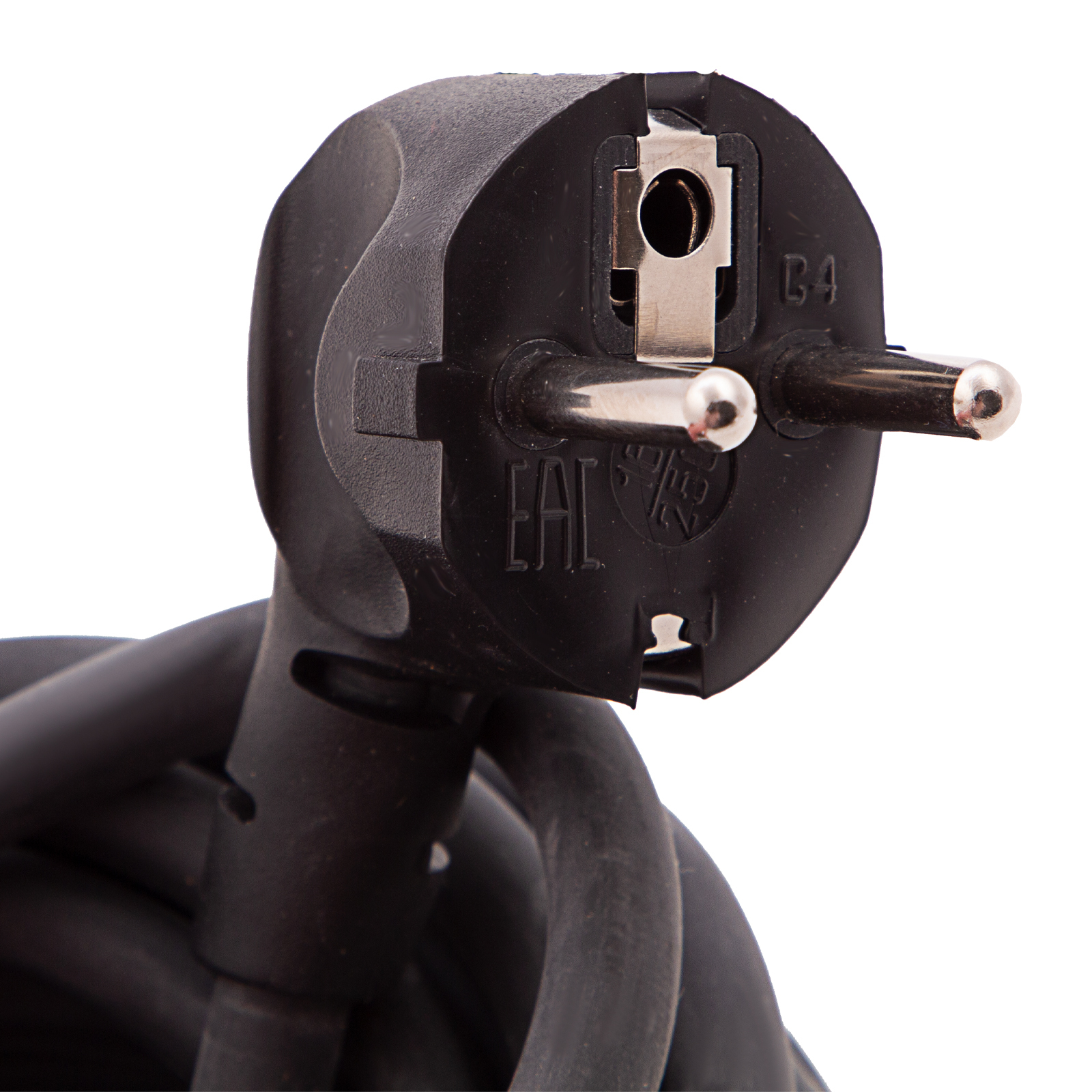 - Вилка изготовлена из каучука, что снижает риск получения электротравмы.