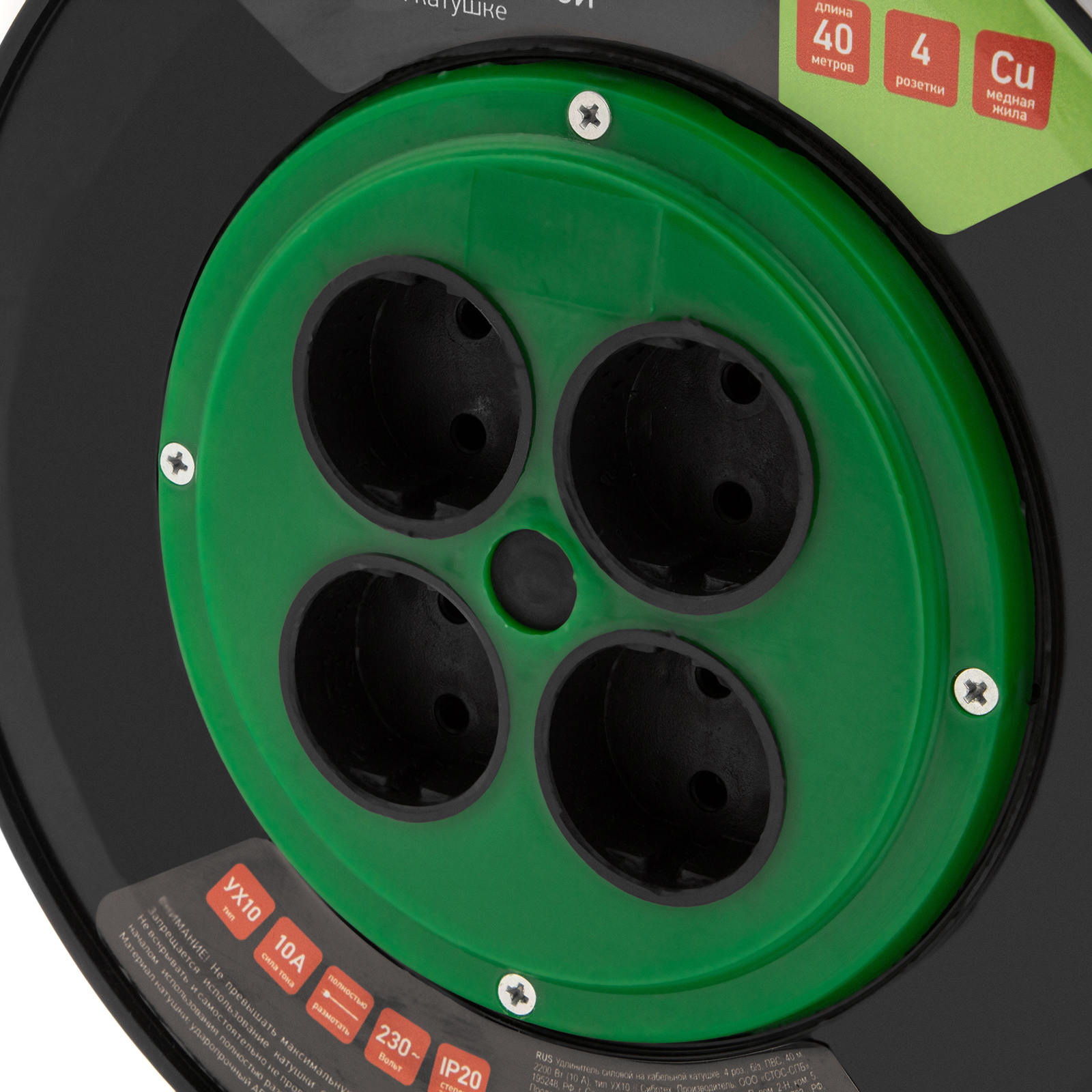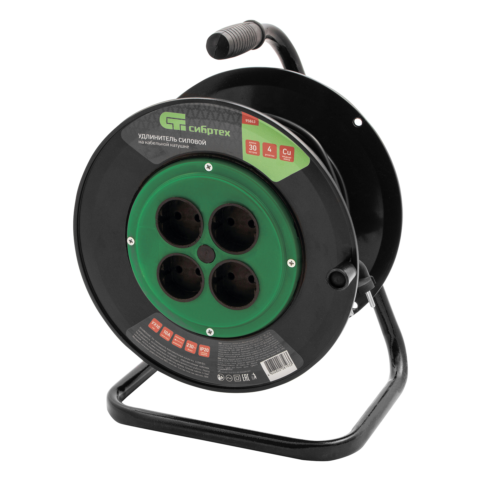 Удлинитель силовой 30 м, 10А, тип УХ10, ПВС, на кабельной катушке, 4 розетки без заземления Сибртех