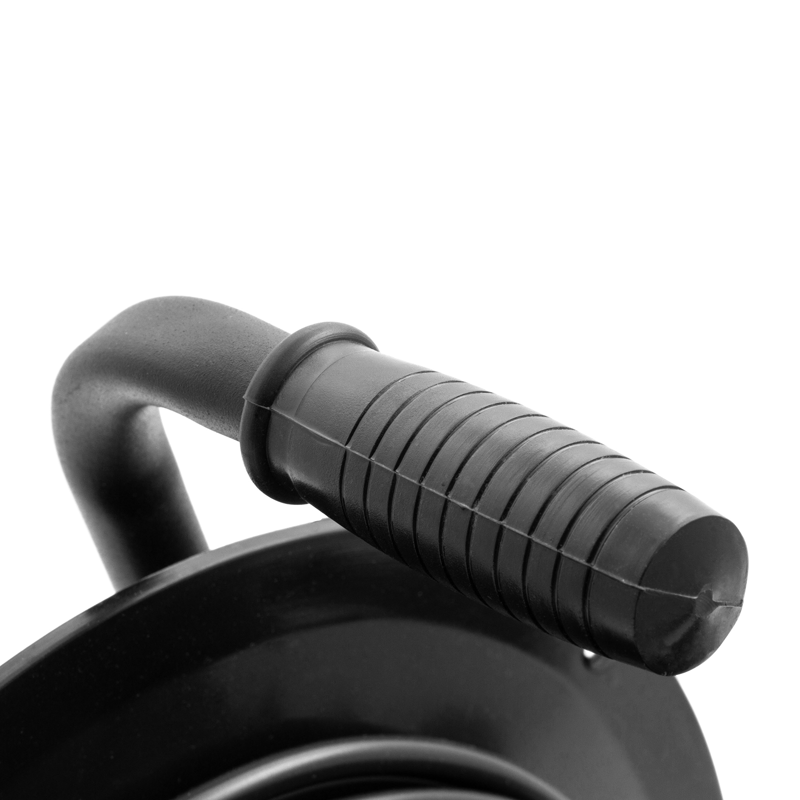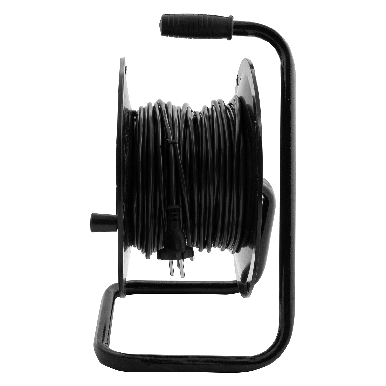 Силовой удлинитель на кабельной катушке Сибртех 95843 типа УХ10, с кабелем ПВС длиной 30 м и 4 розетками без заземления, рассчитан на силу тока 10 А и предназначен для подключения к удаленному источнику питания электроприборов суммарной мощностью не более 2200 Вт. Удобная рукоятка облегчает разматывание и сматывание кабеля. Сетевой удлинитель пригодится для работы с инструментом на строительной площадке, дачном участке, в автомастерской.