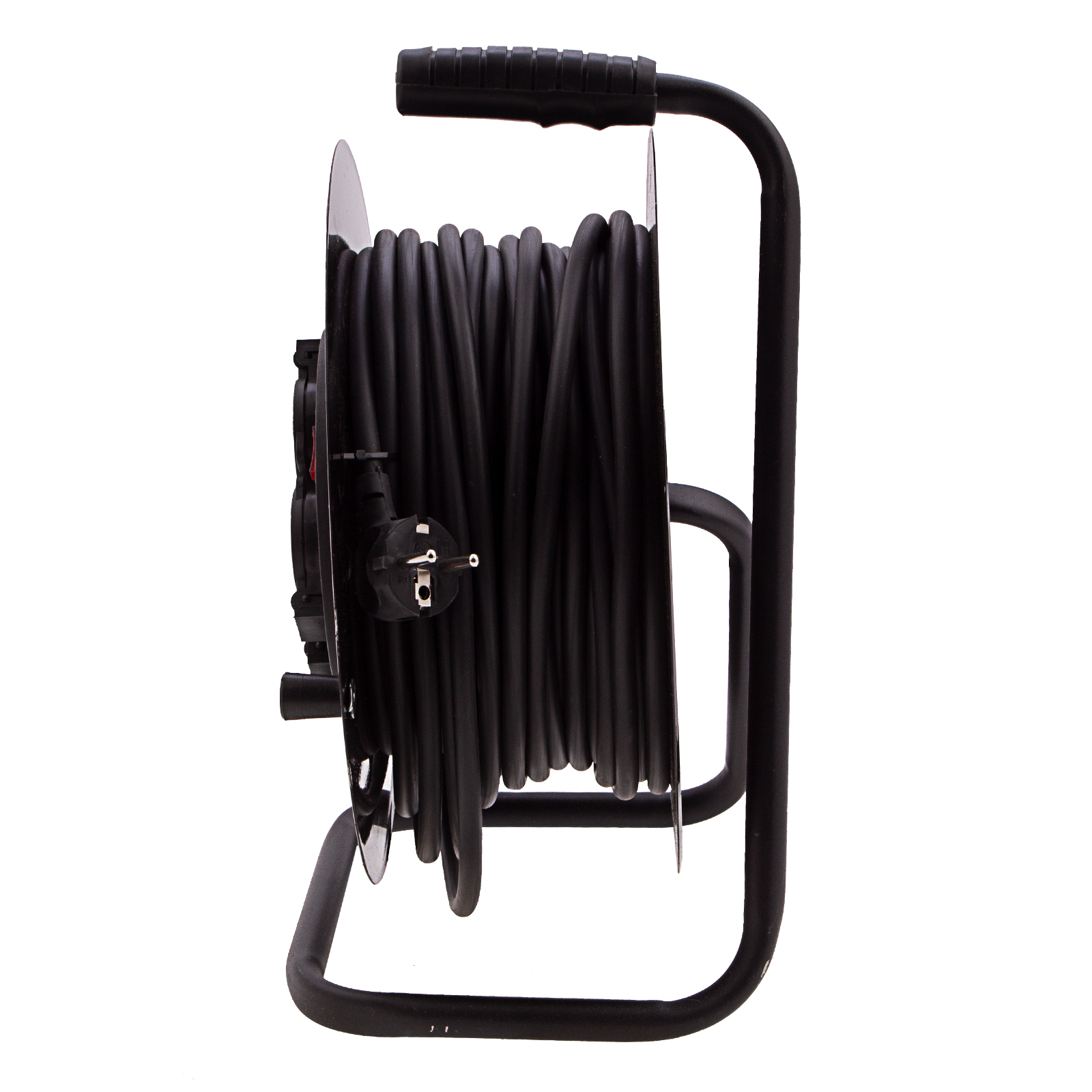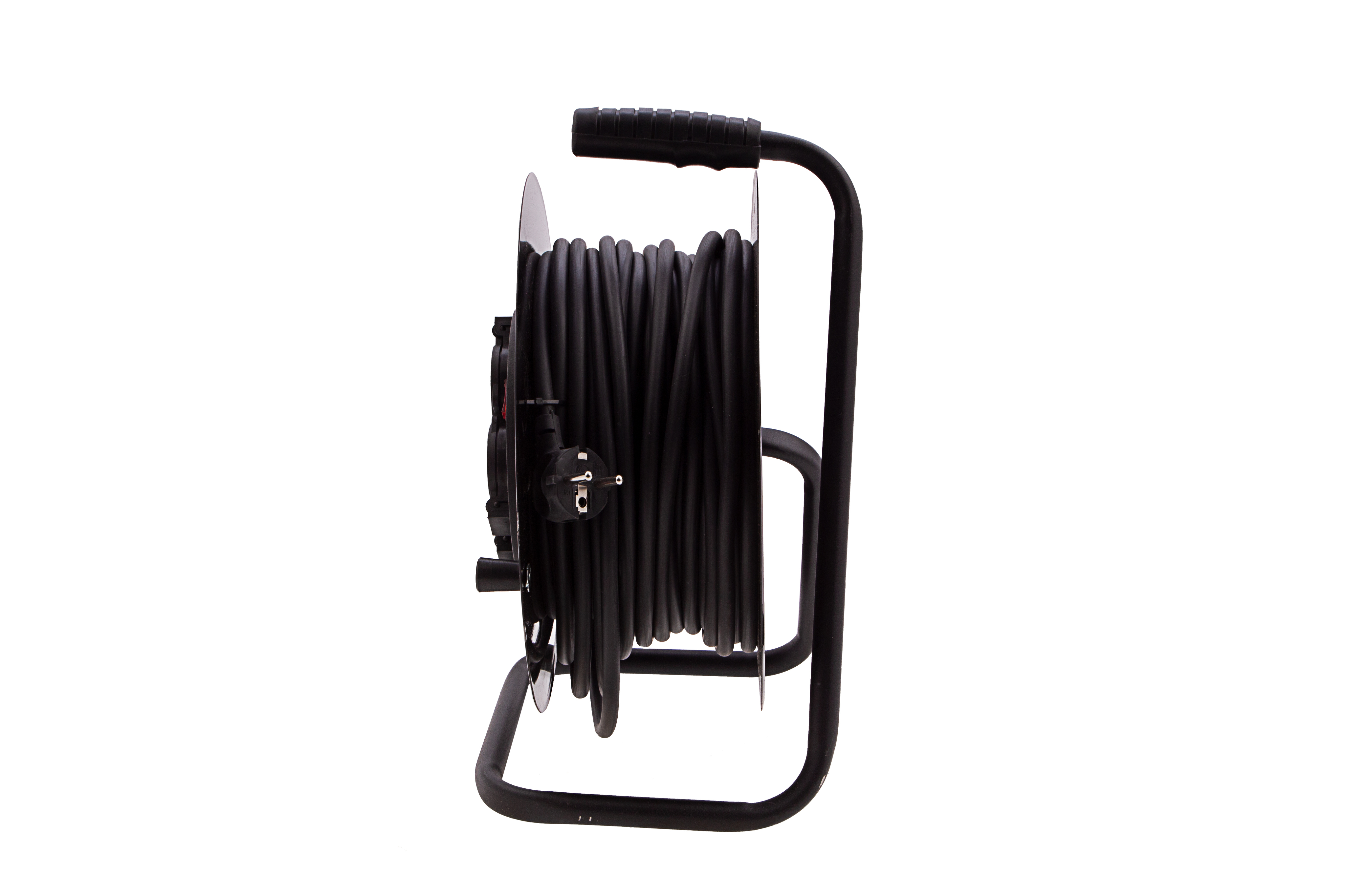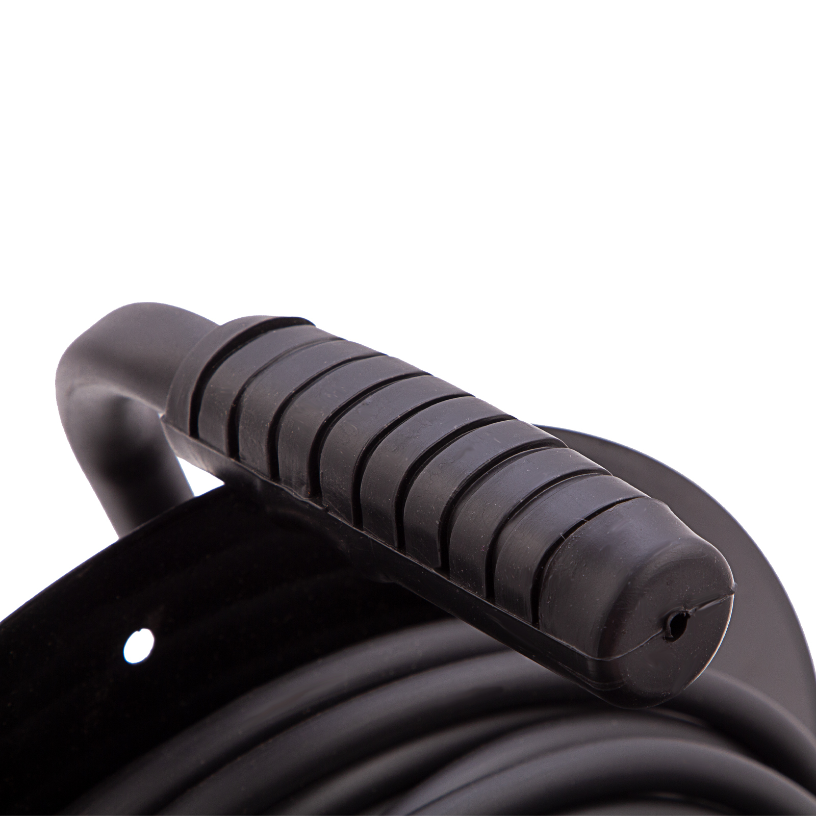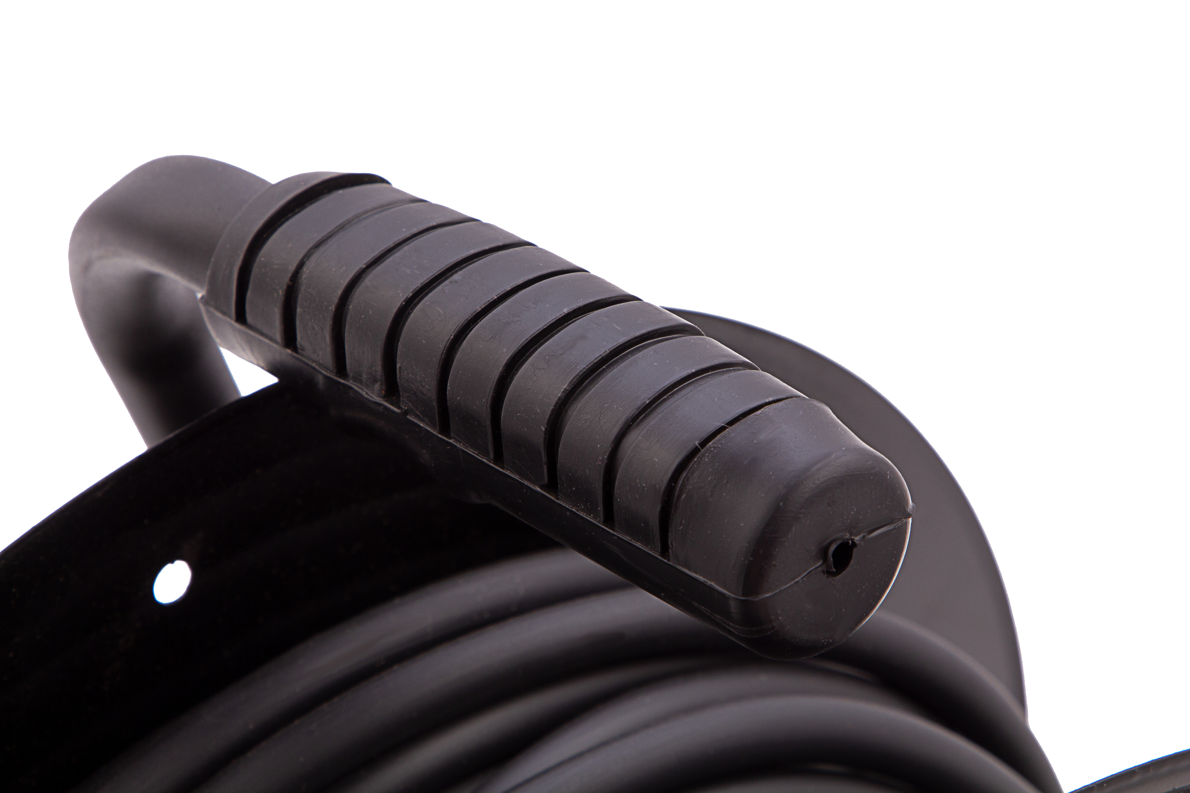 - Удобная ручка позволяет быстро разматывать и сматывать кабель.