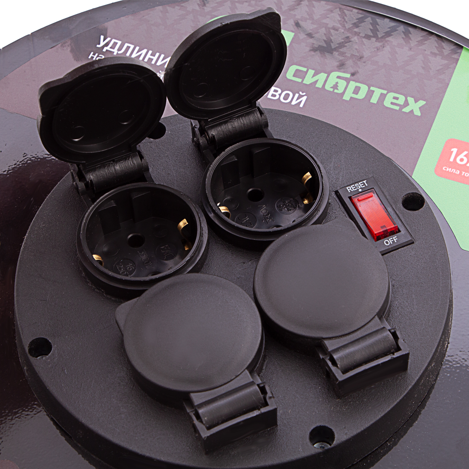 Удлинитель силовой 30 м, 16А, тип УХз16, КГ 3 x 1.5 мм, на стальной катушке, 4 розетки Сибртех