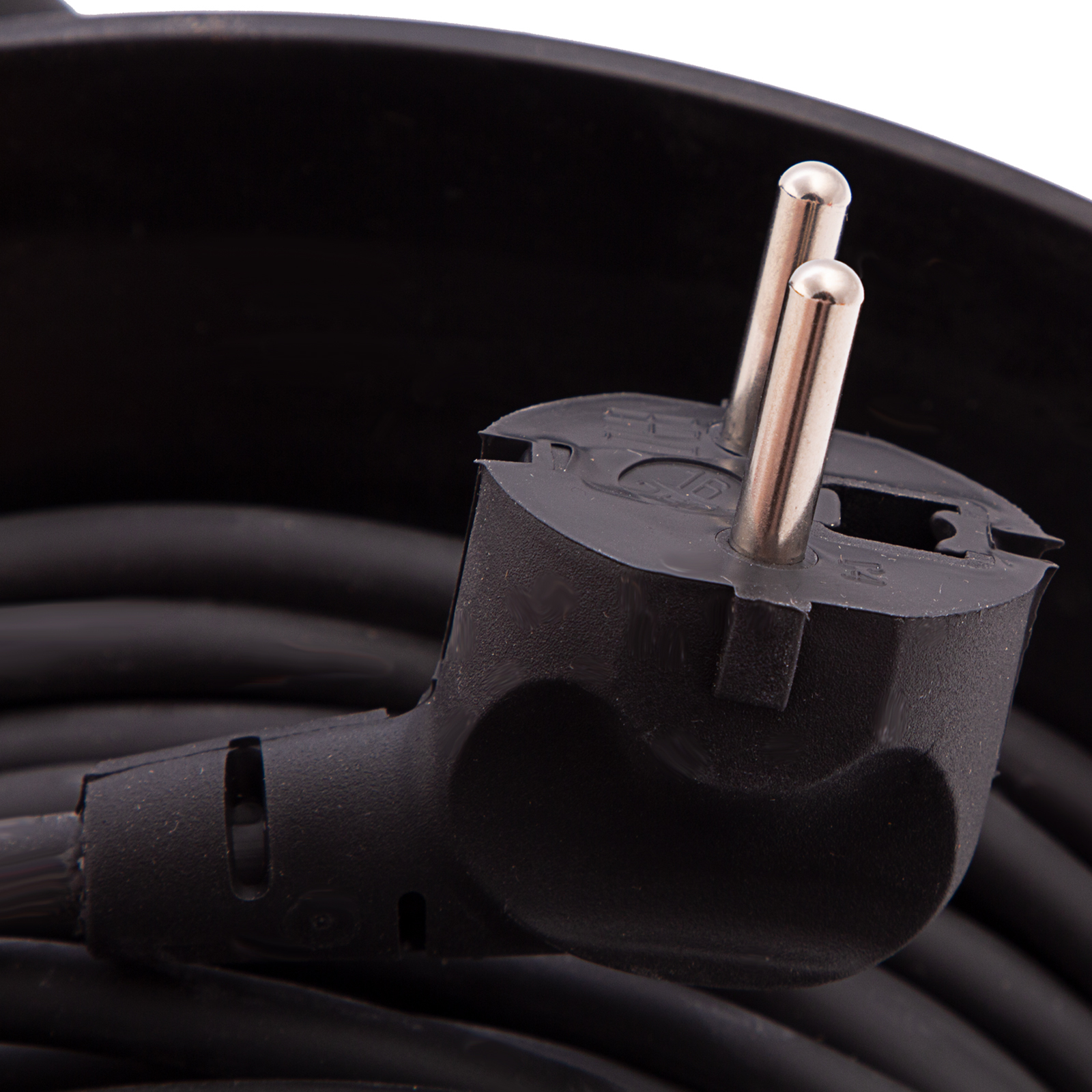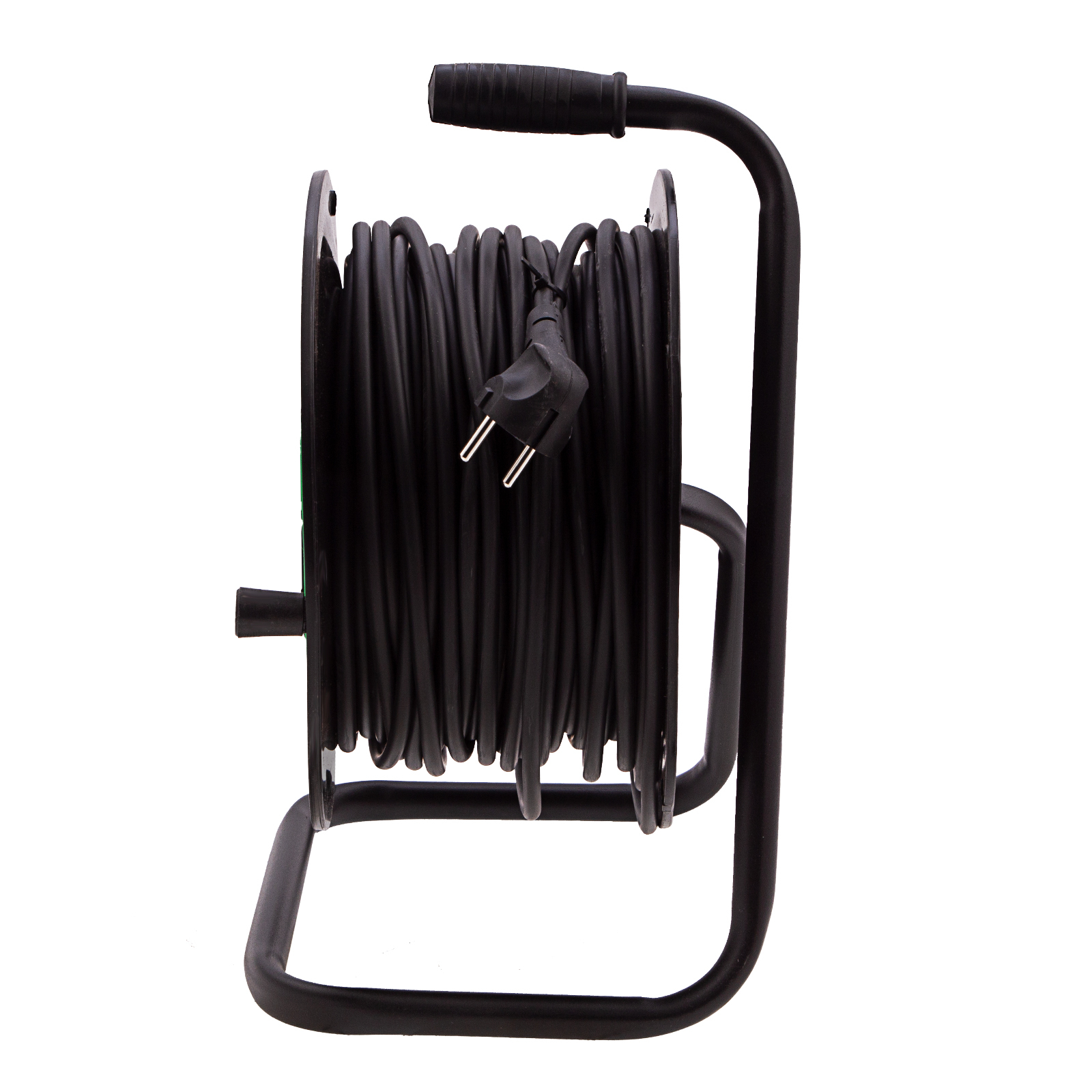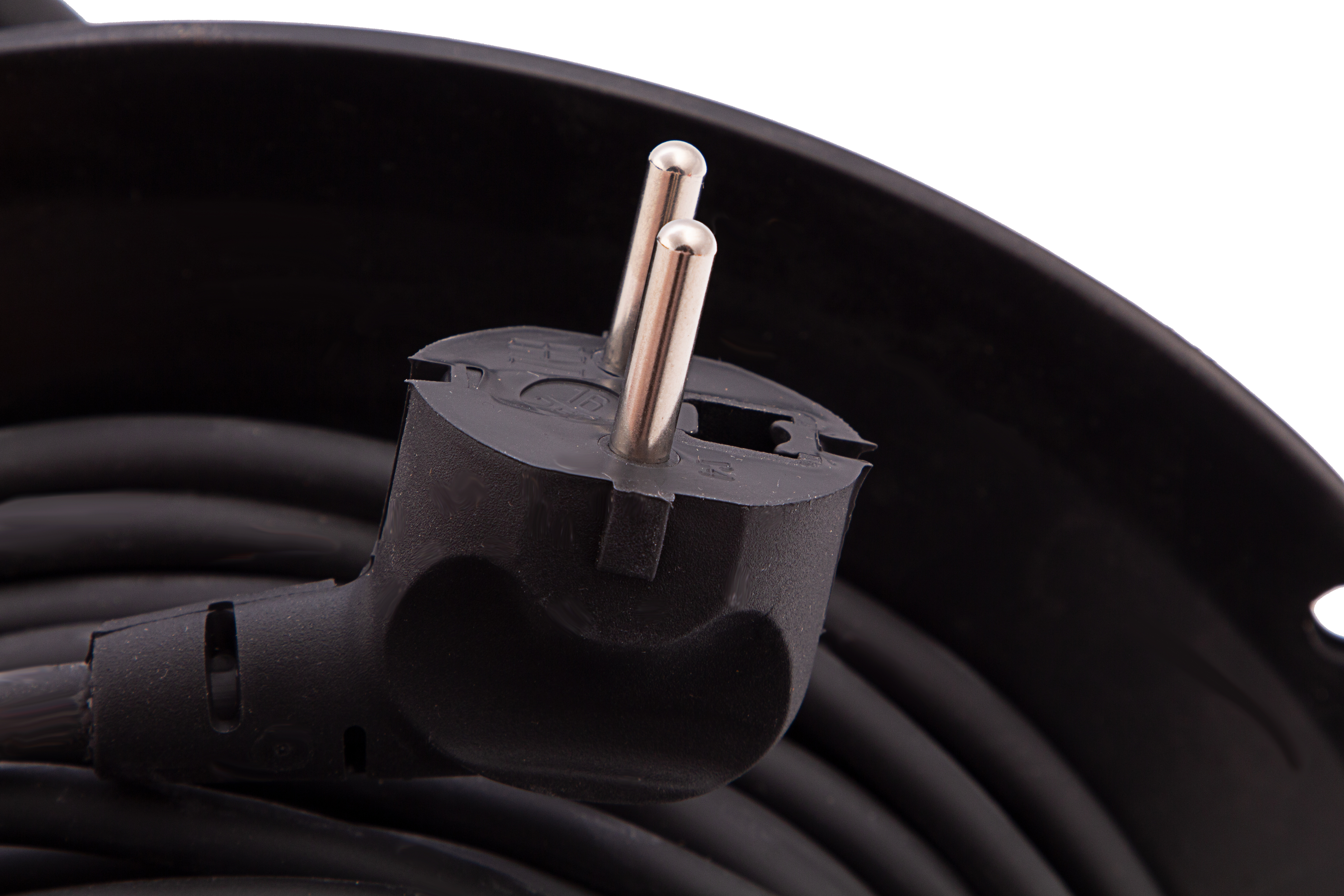 - Кабель быстро сматывается и разматывается при помощи удобной ручки.