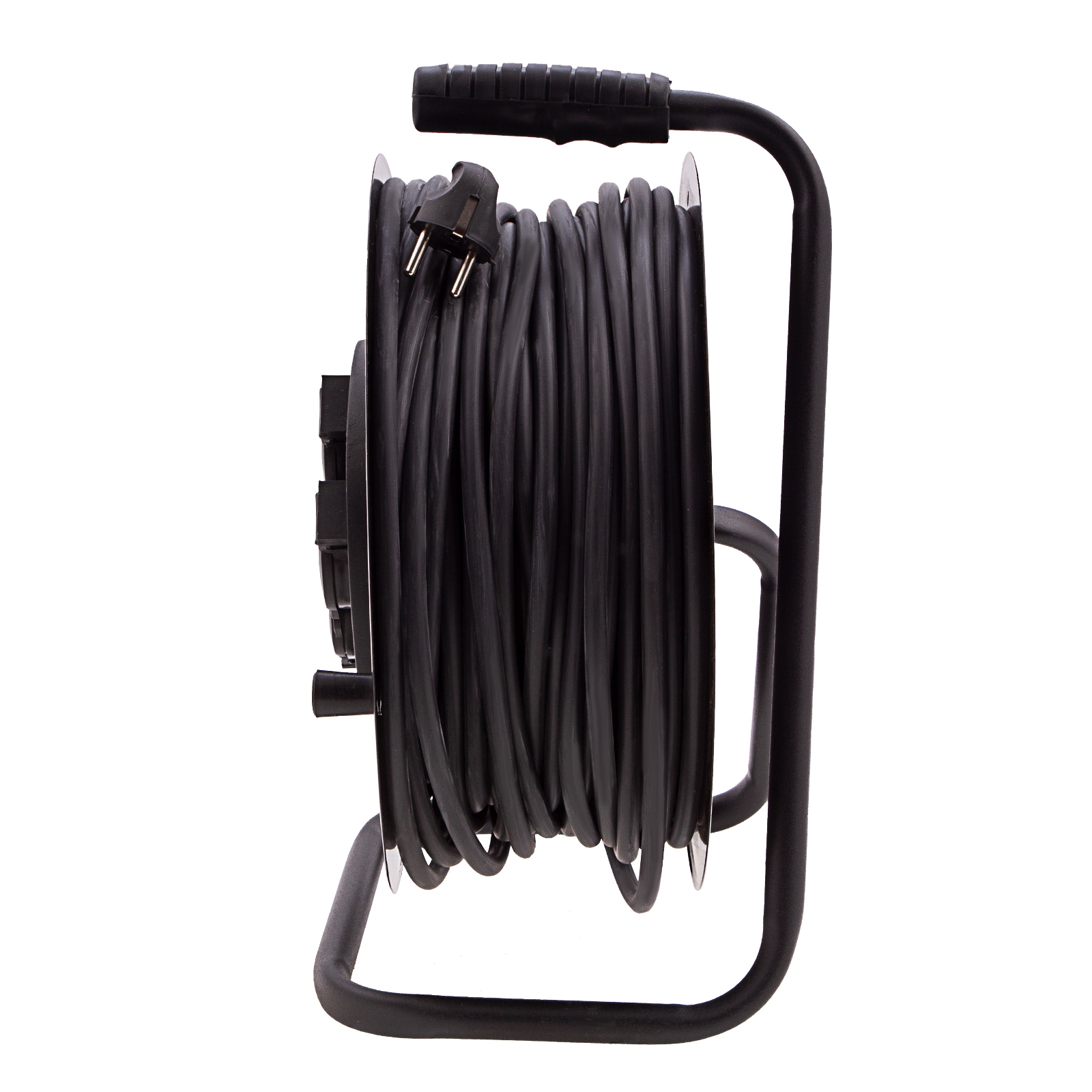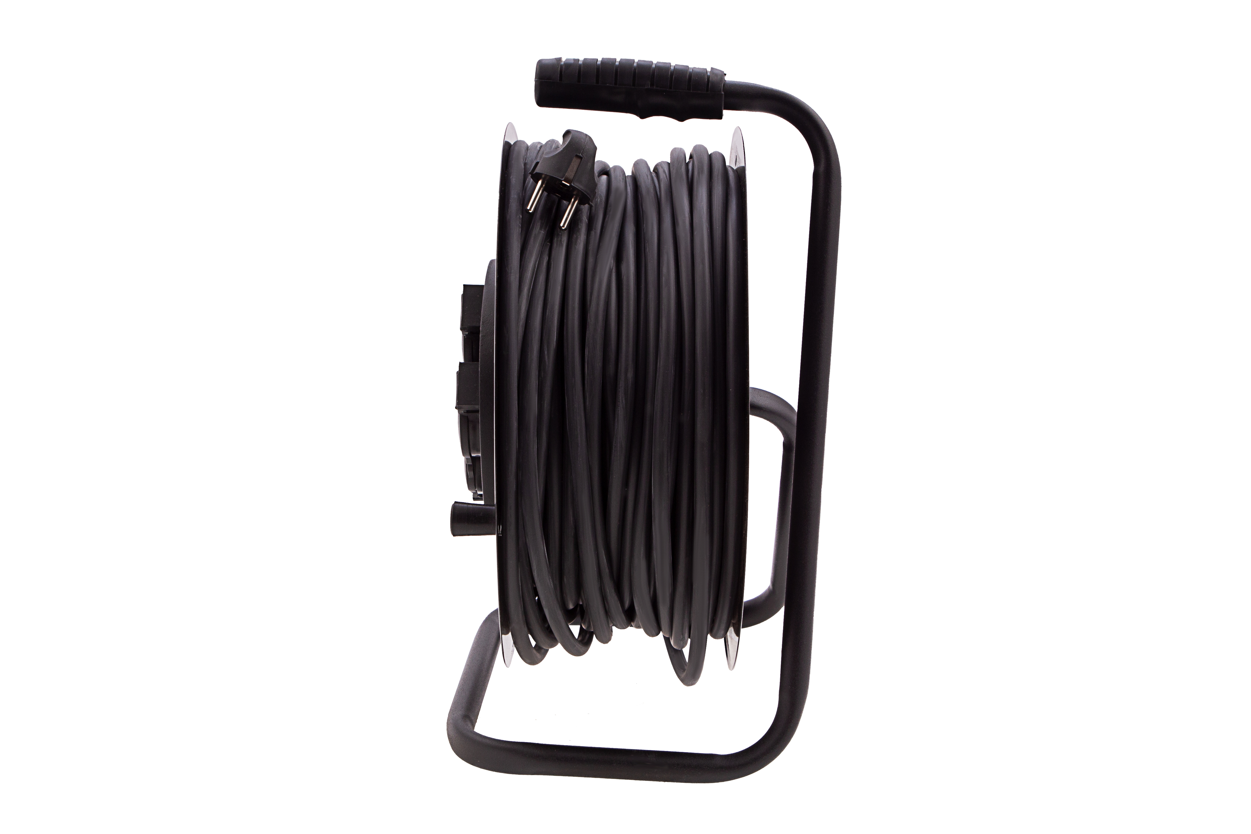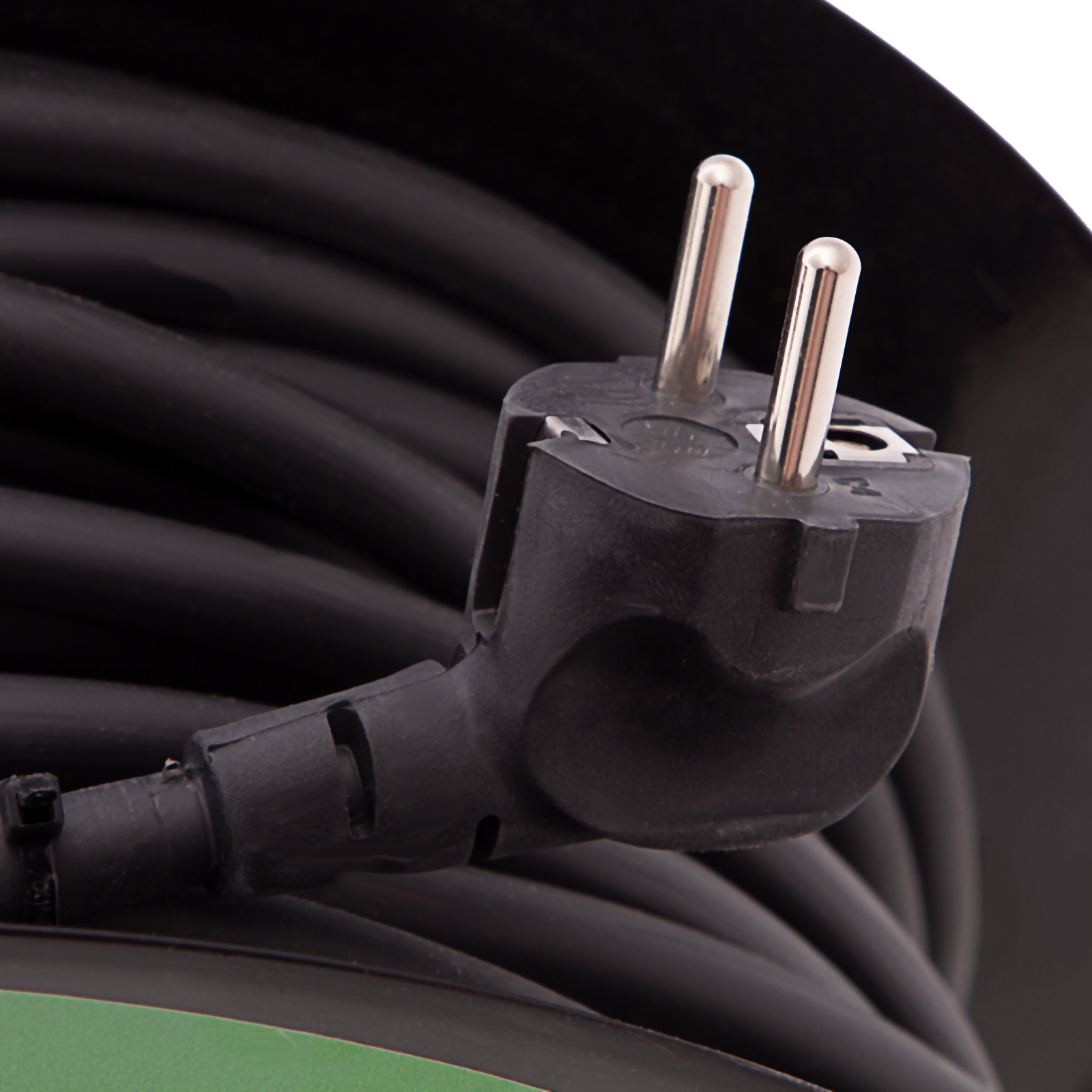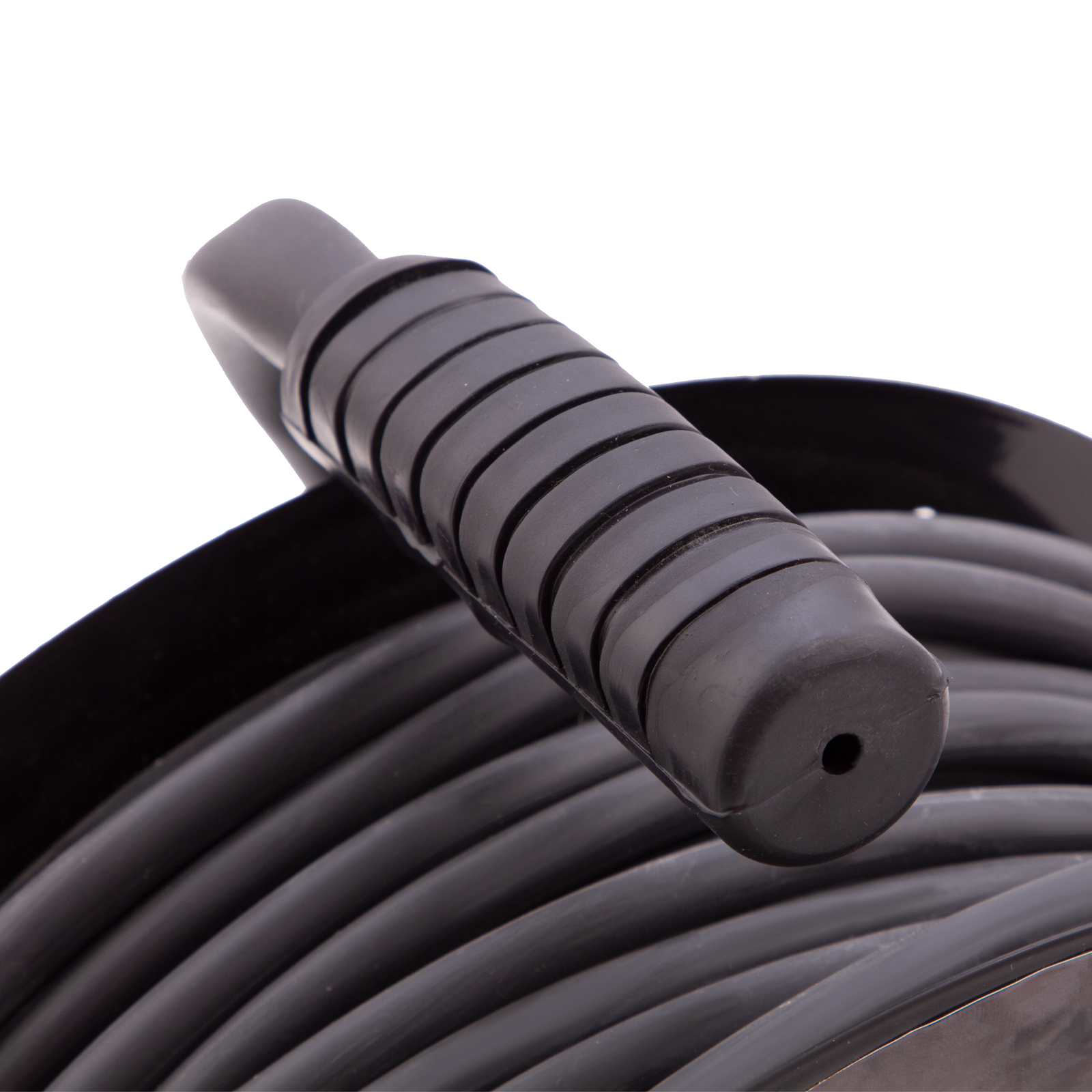 - Удобная ручка позволяет быстро разматывать и сматывать кабель.