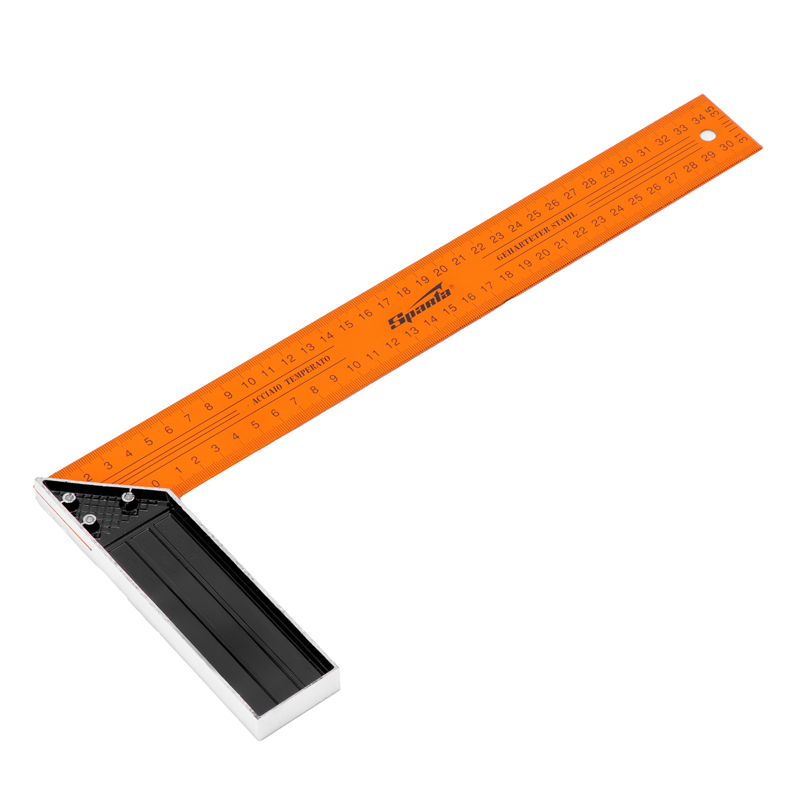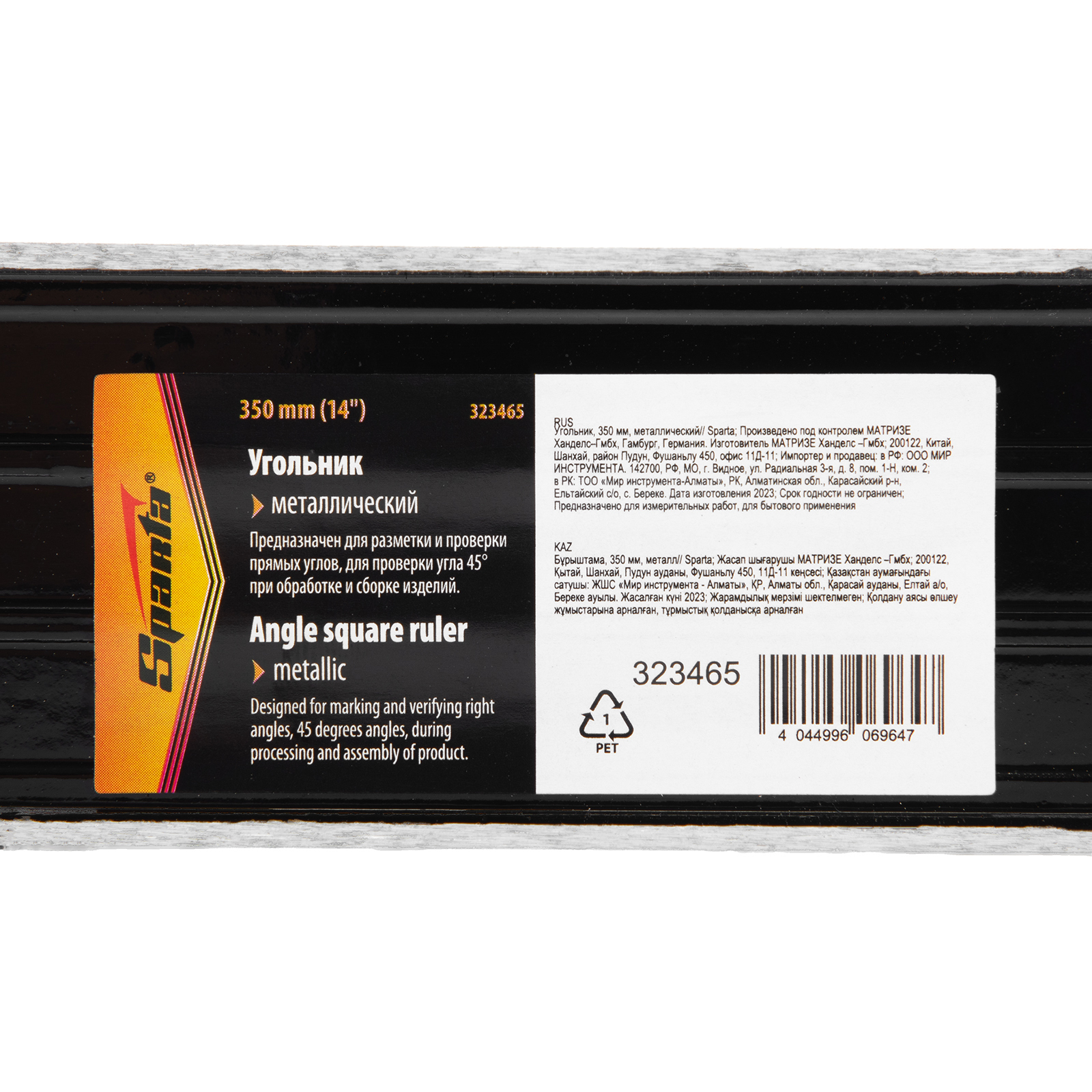 Металлический угольник Sparta 323465 длиной 350 мм пригодится для выполнения столярных и строительных работ. С его помощью можно задать и проверить угол 90° при сборке или обработке различных изделий.