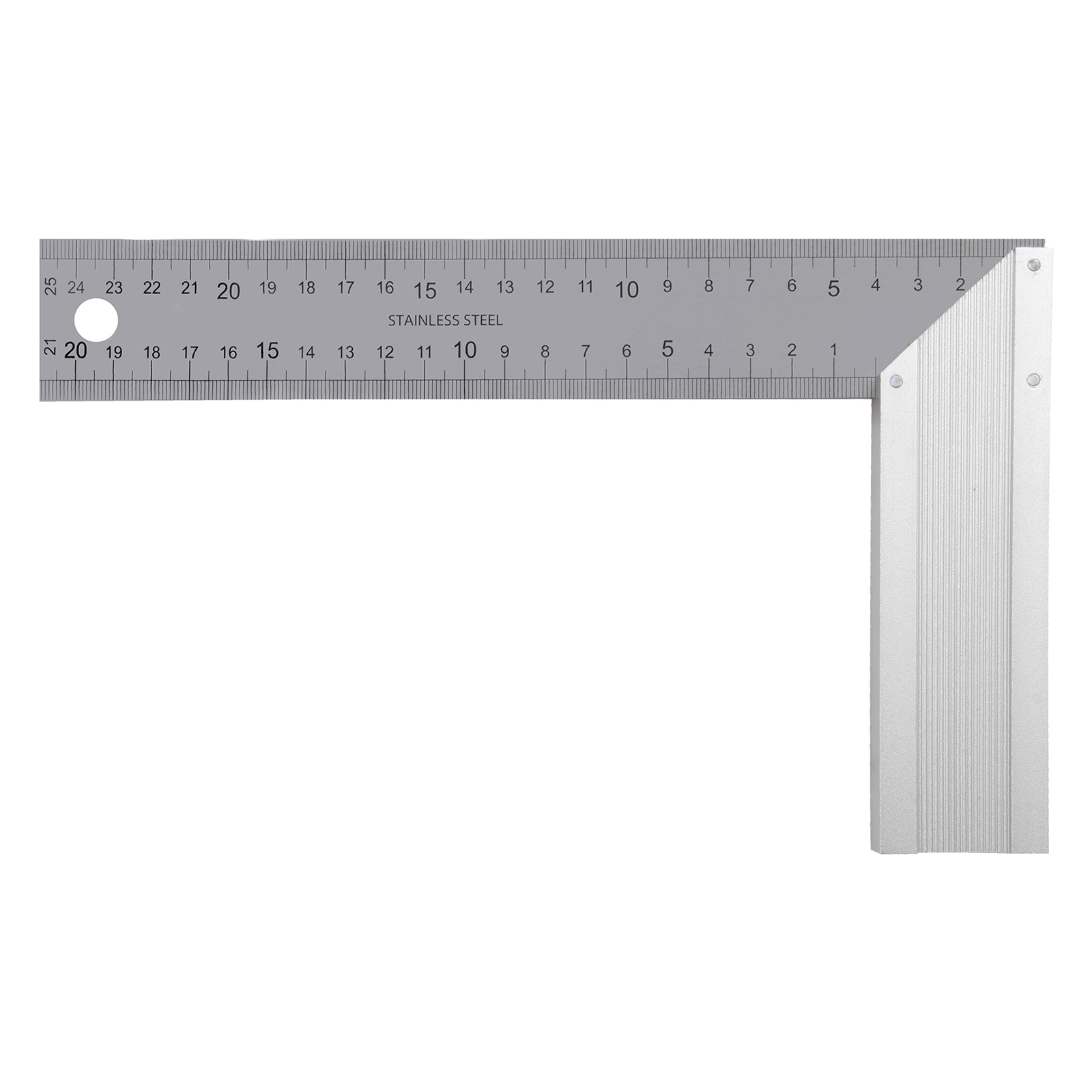 Угольник стальной 250 мм, нержавеющая сталь, градуировка, алюминиевое основание Denzel