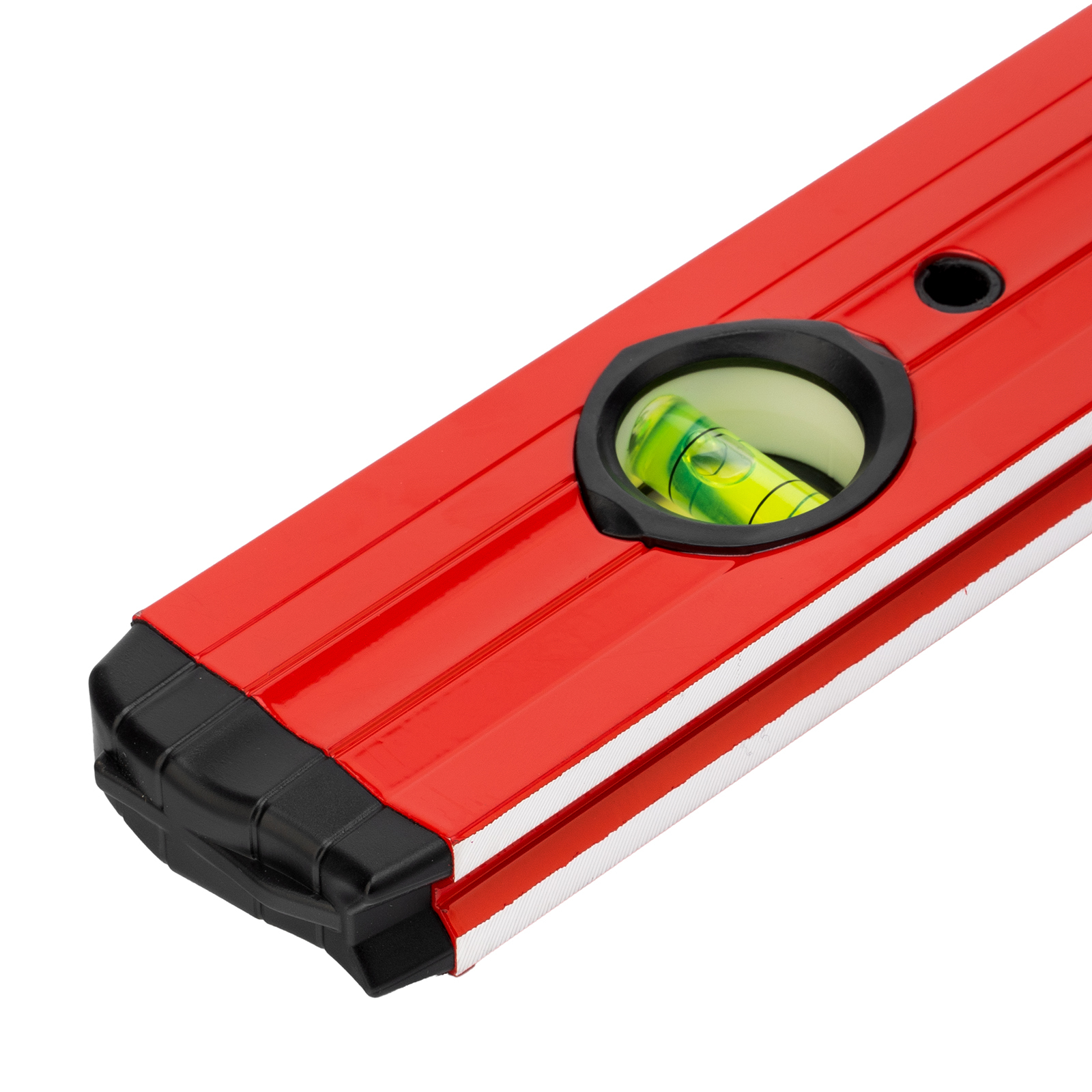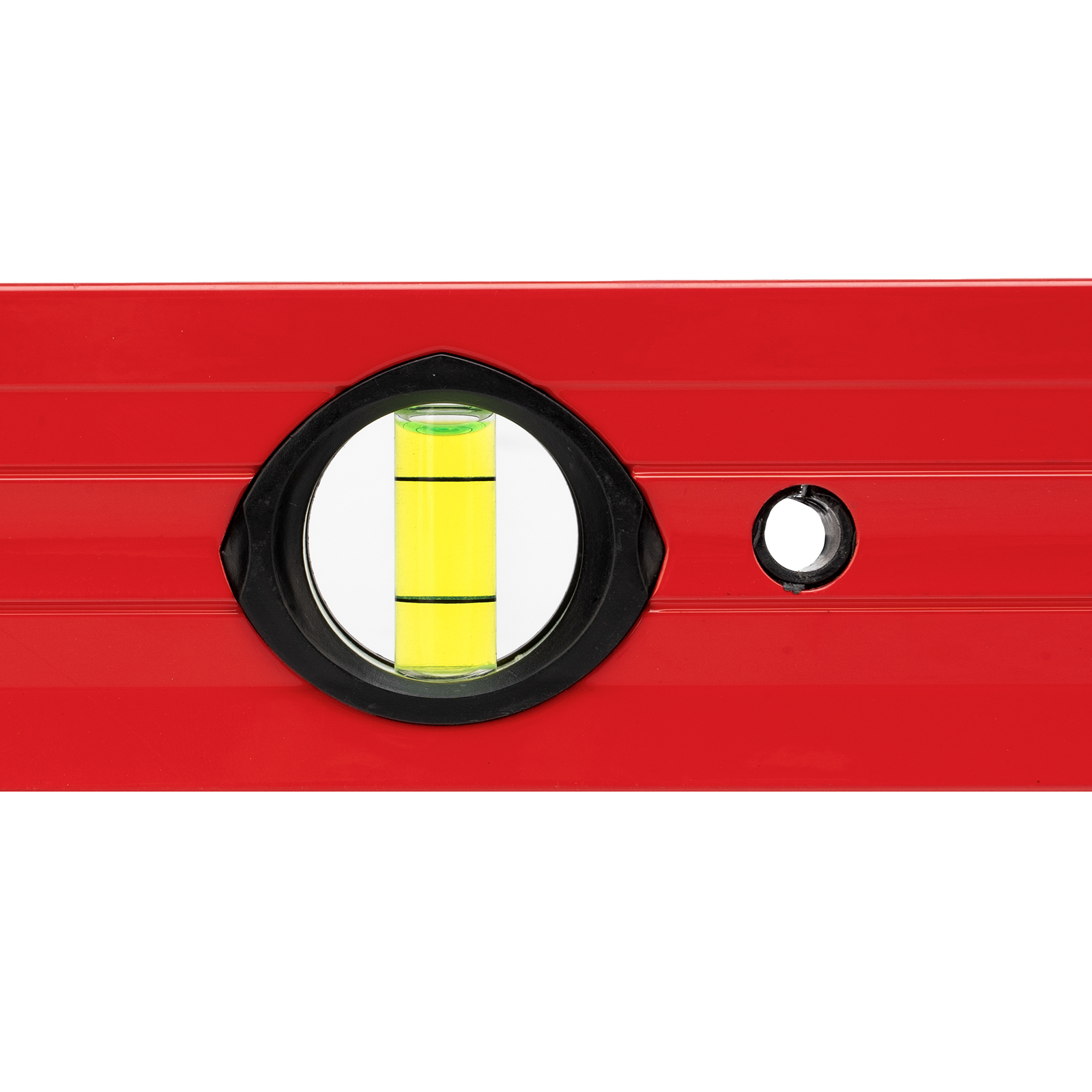 Фрезерованный алюминиевый уровень Matrix 33228 длиной 1000 мм, с 3 глазками и 2 эргономичными ручками, поможет проверить горизонтальные и вертикальные поверхности, выставить угол 45 градусов. Он будет полезен на любом этапе строительства и ремонта: при облицовке и отделке поверхностей, монтаже конструкций и т.д. Погрешность измерений на метр не превышает 1 мм (0,057 градуса).,Для определения отклонения вертикали 90 градусов необходимо использовать пузырьковую ампулу только в верхнем положении уровня. Только базовая поверхность является рабочей (противоположная ампуле 180 градусов).