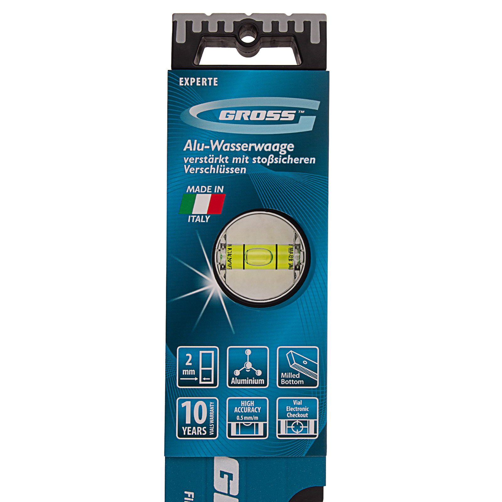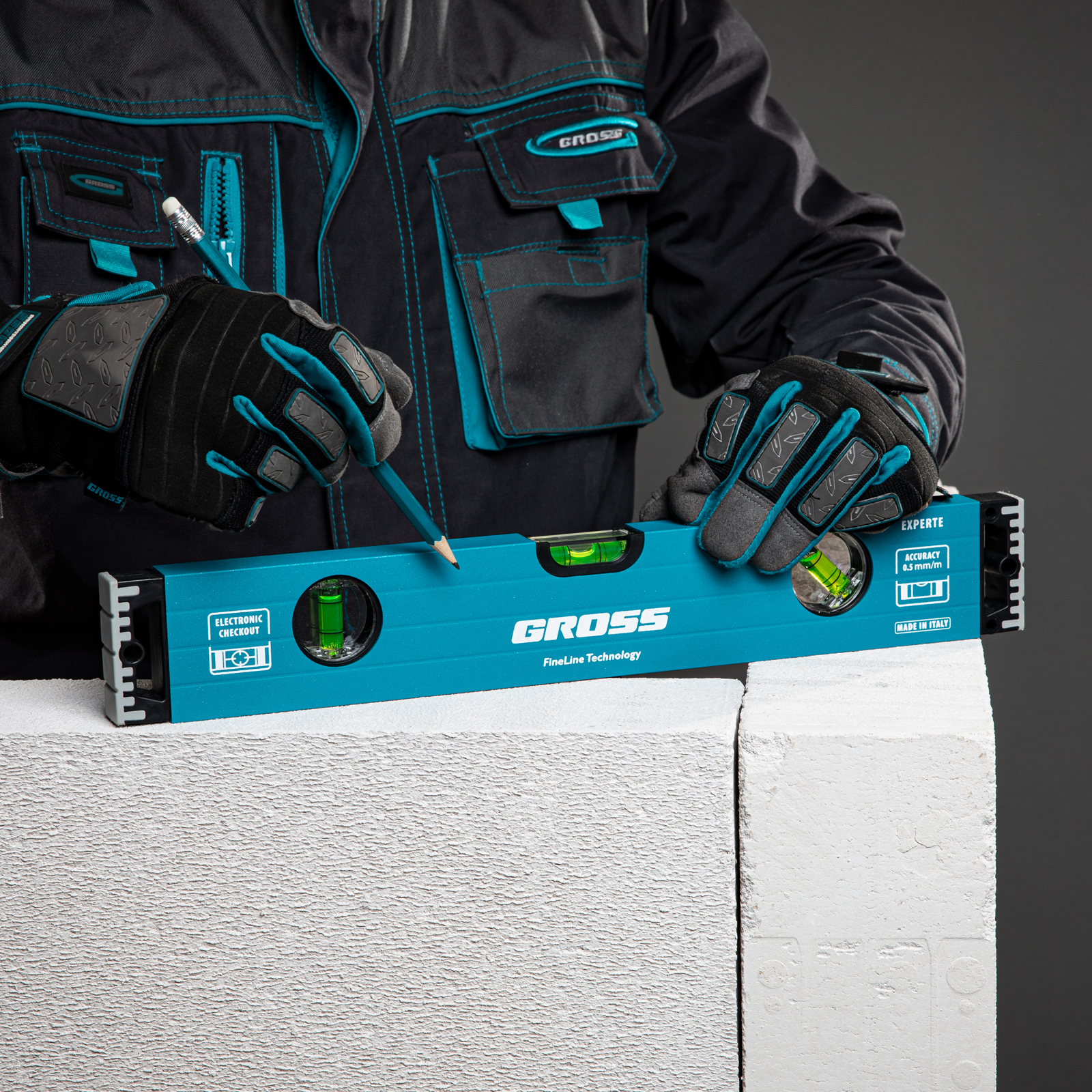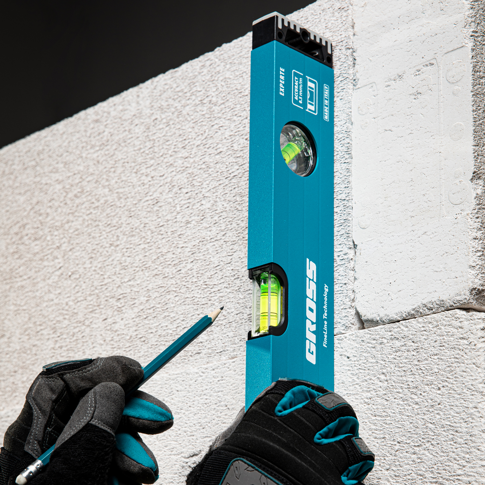 Алюминиевый уровень Gross 34324 длиной 400 мм, с усиленной конструкцией и ударопрочными заглушками, оснащен 3 глазками. Благодаря ему мастер сможет найти отклонения от горизонтали, вертикали или угла 45 градусов. Рассчитан на интенсивное использование, поэтому будет полезен в ходе строительных и ремонтных работ при укладке плитки, кирпича, заливке полов и при выполнении других операций.