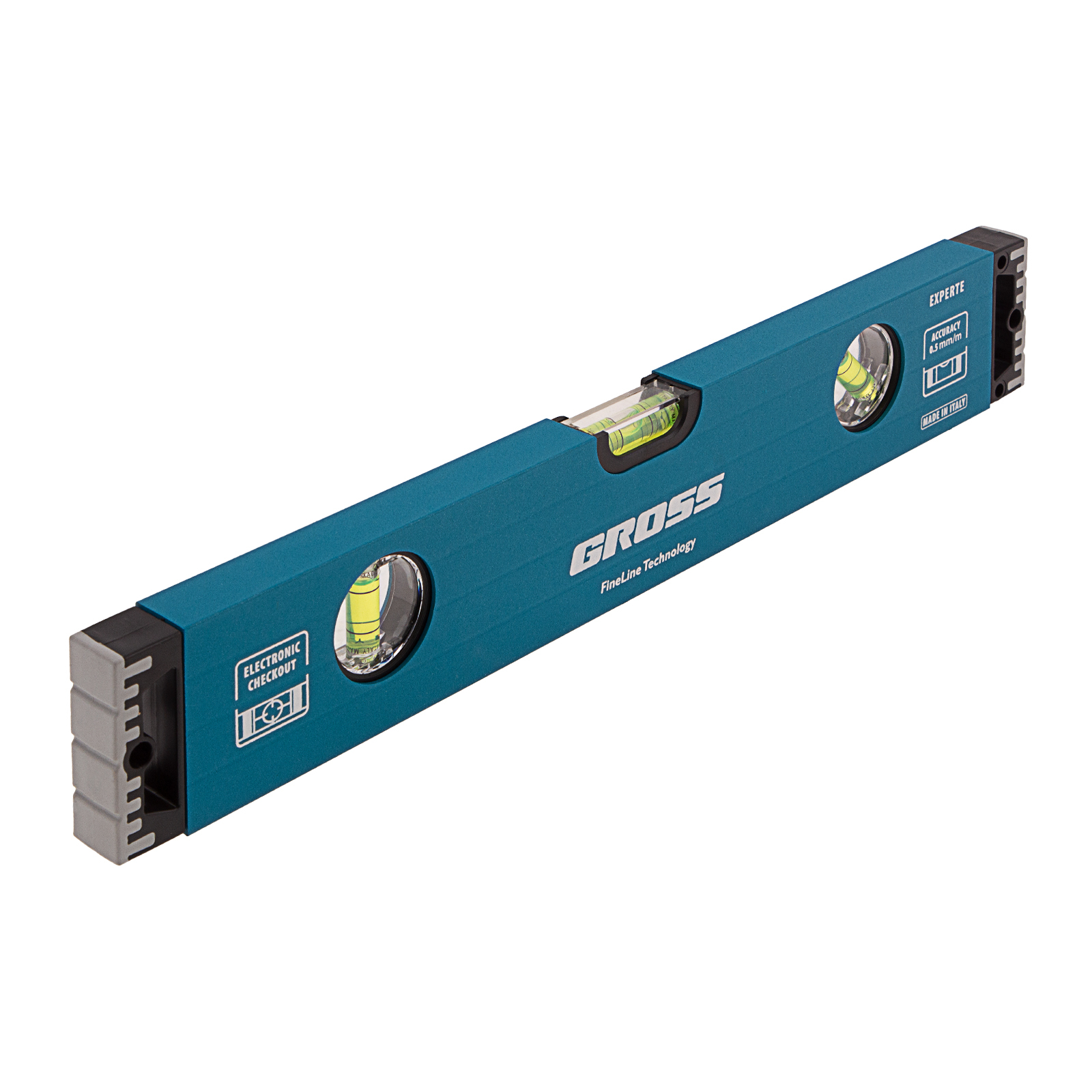 Уровень алюминиевый, 400 мм, усиленный с ударопрочными заглушками, 3 глазка Gross