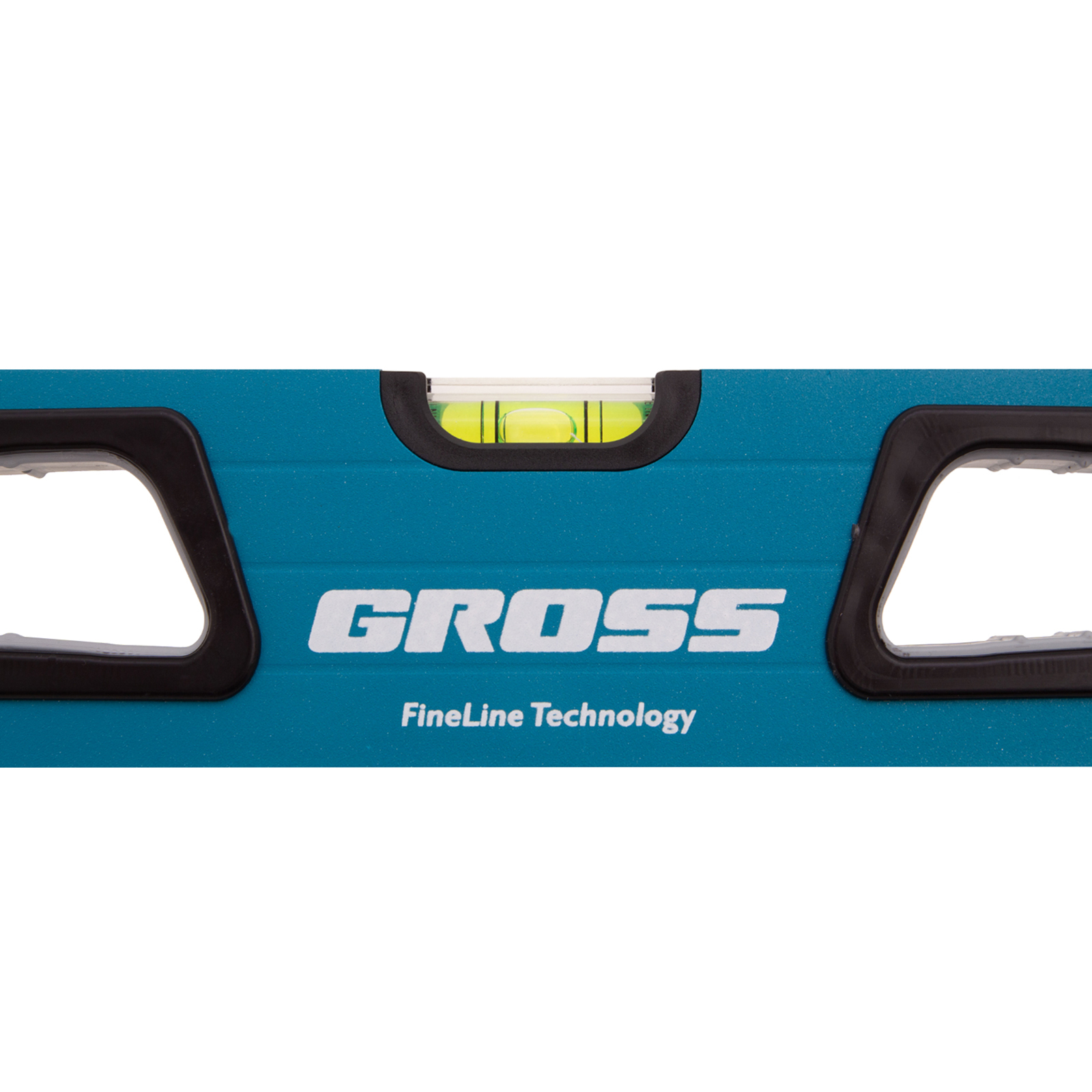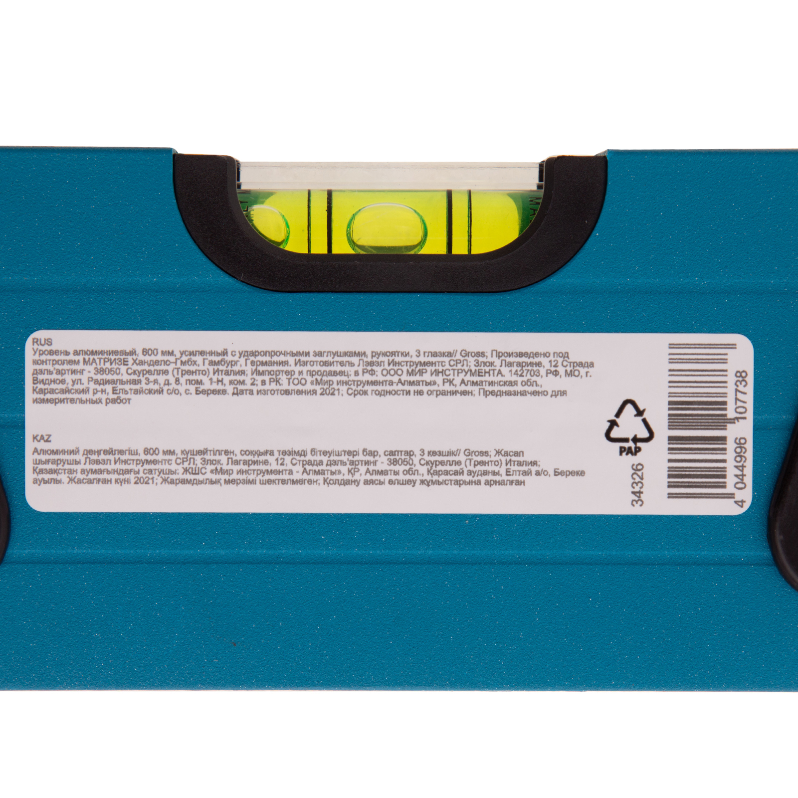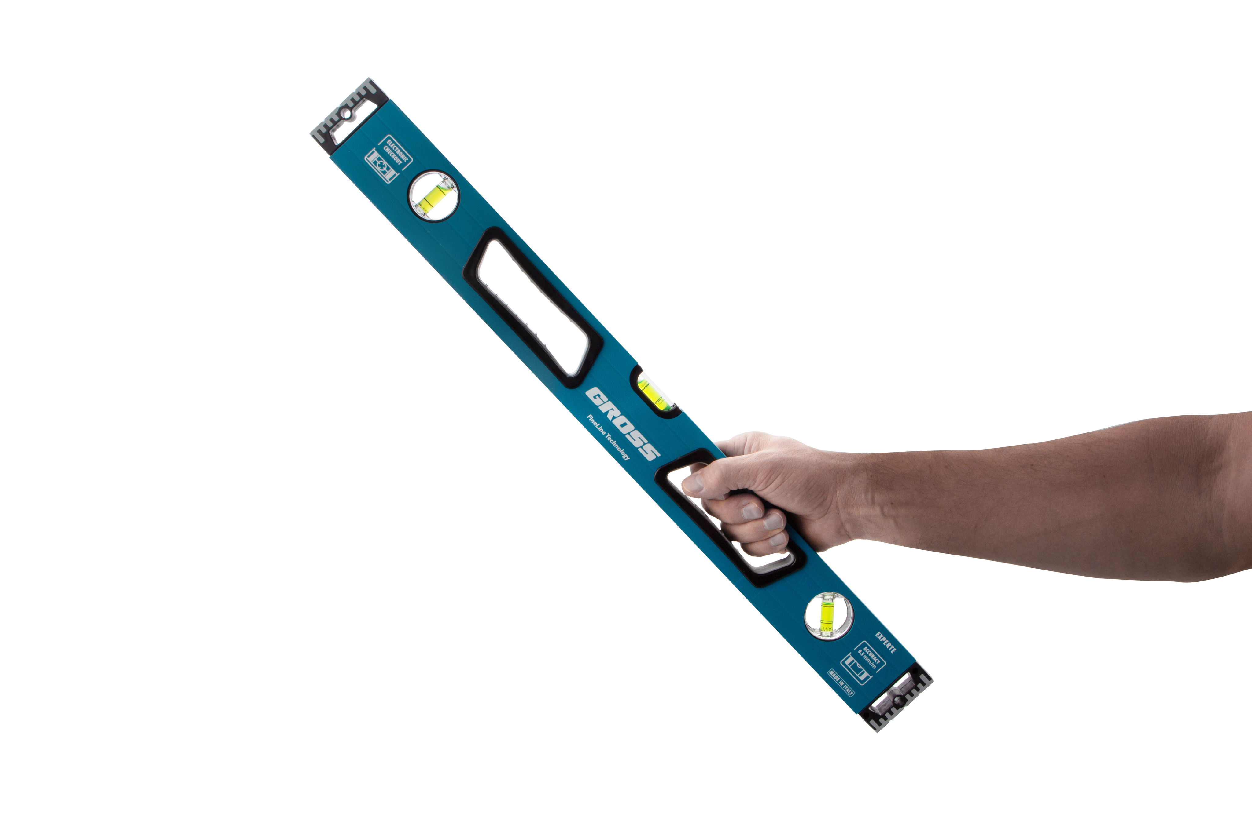 Уровень алюминиевый, 600 мм, усиленный с ударопрочными заглушками, рукоятки, 3 глазка Gross