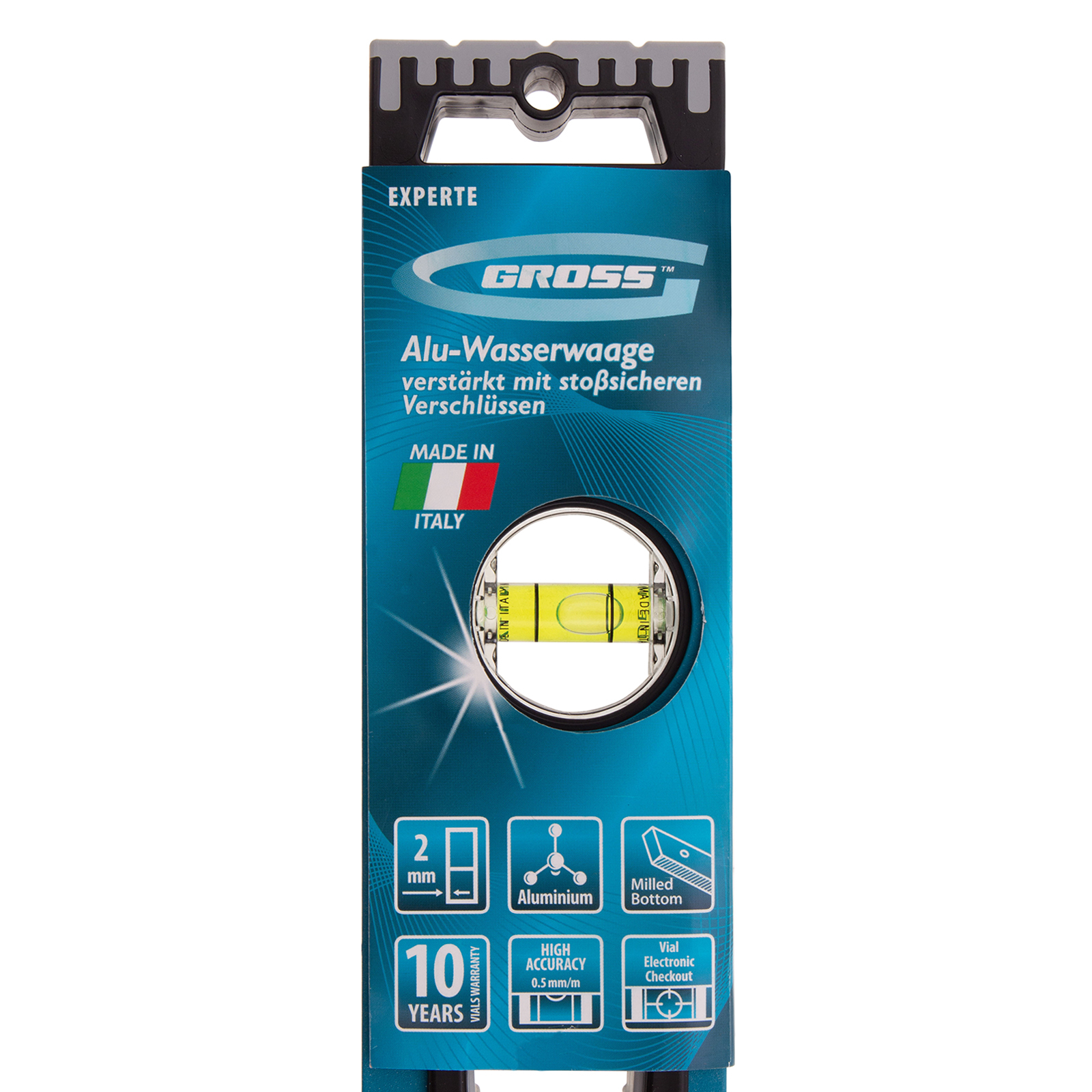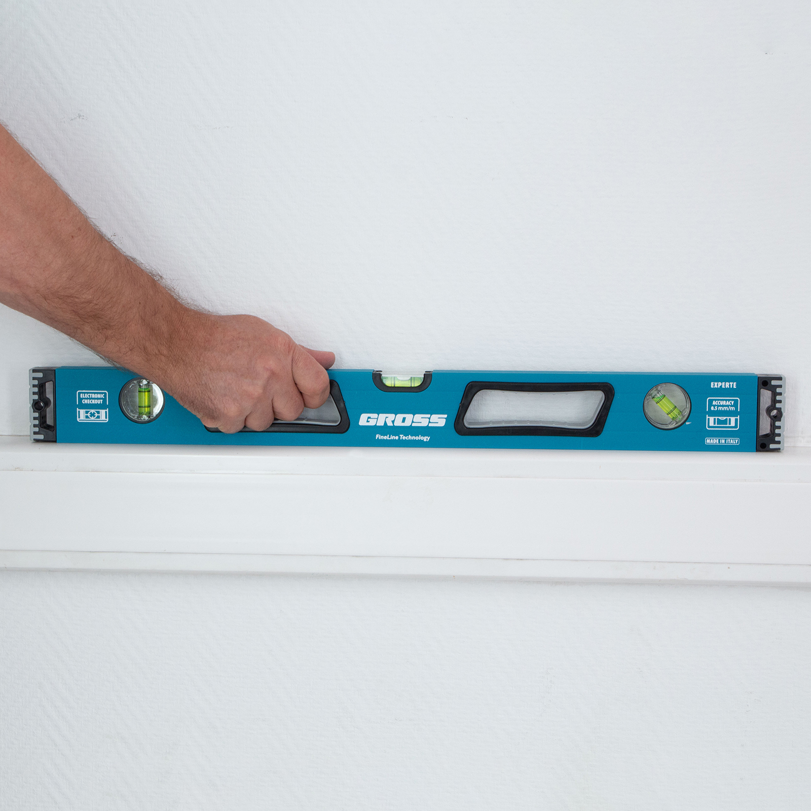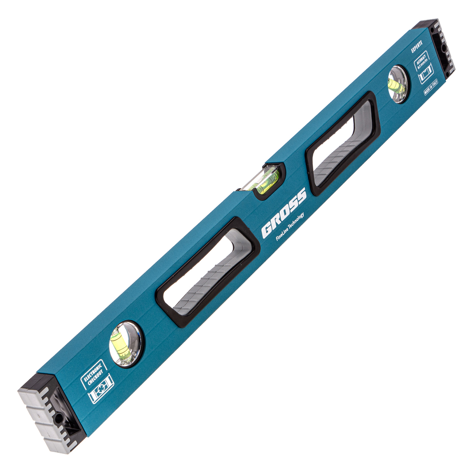Уровень алюминиевый, 600 мм, усиленный с ударопрочными заглушками, рукоятки, 3 глазка Gross
