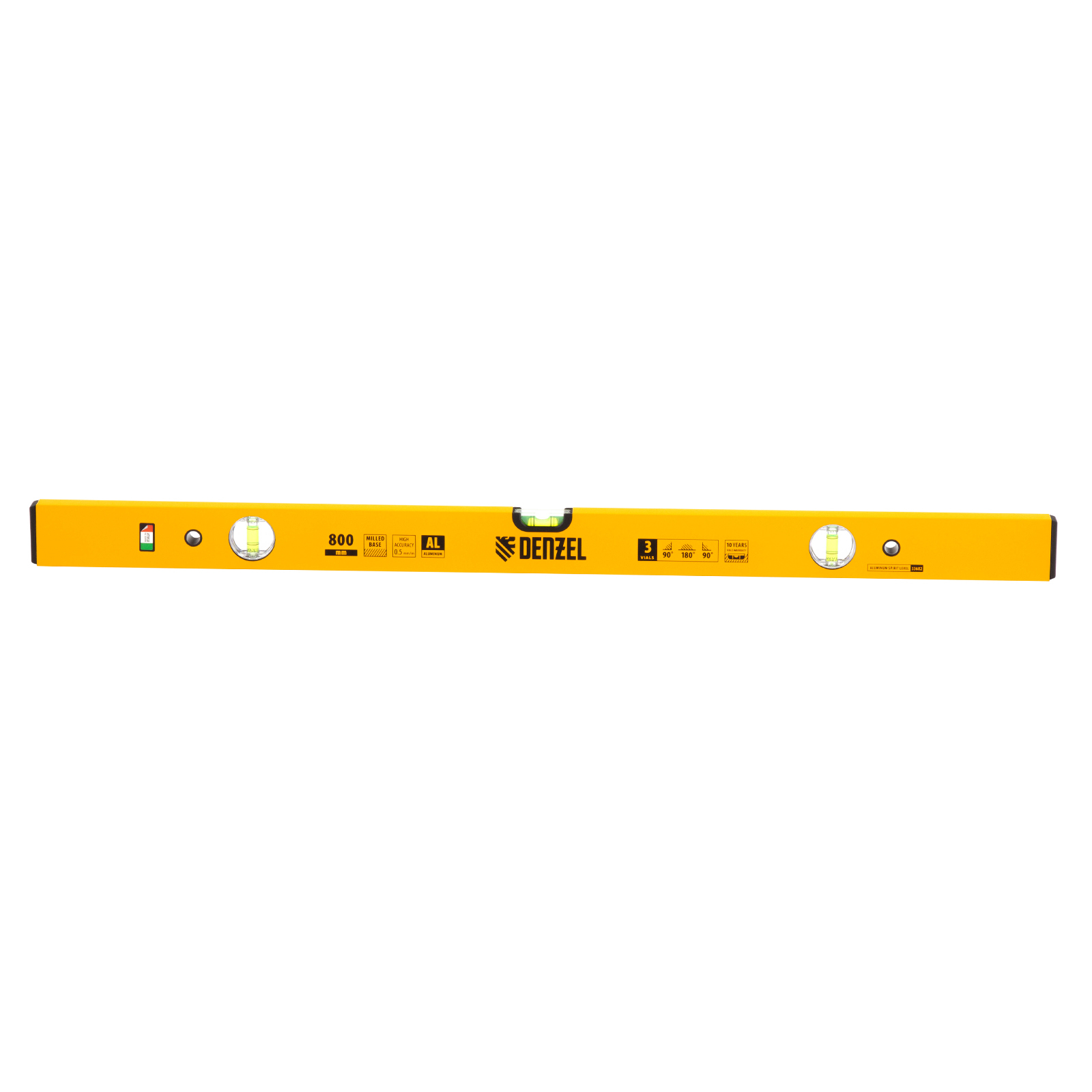 Уровень алюминиевый, 800 мм, фрезерованный, 3 глазка Denzel