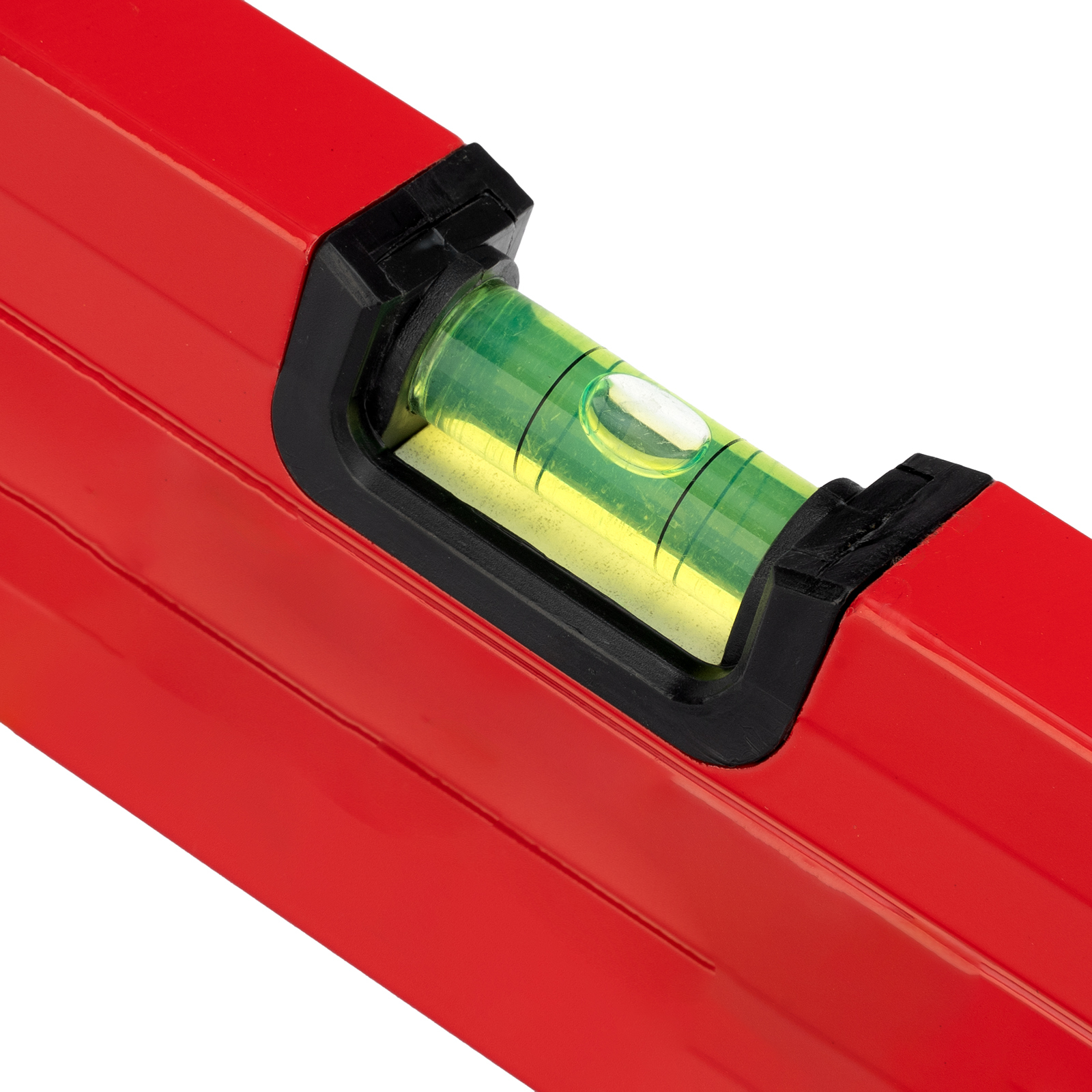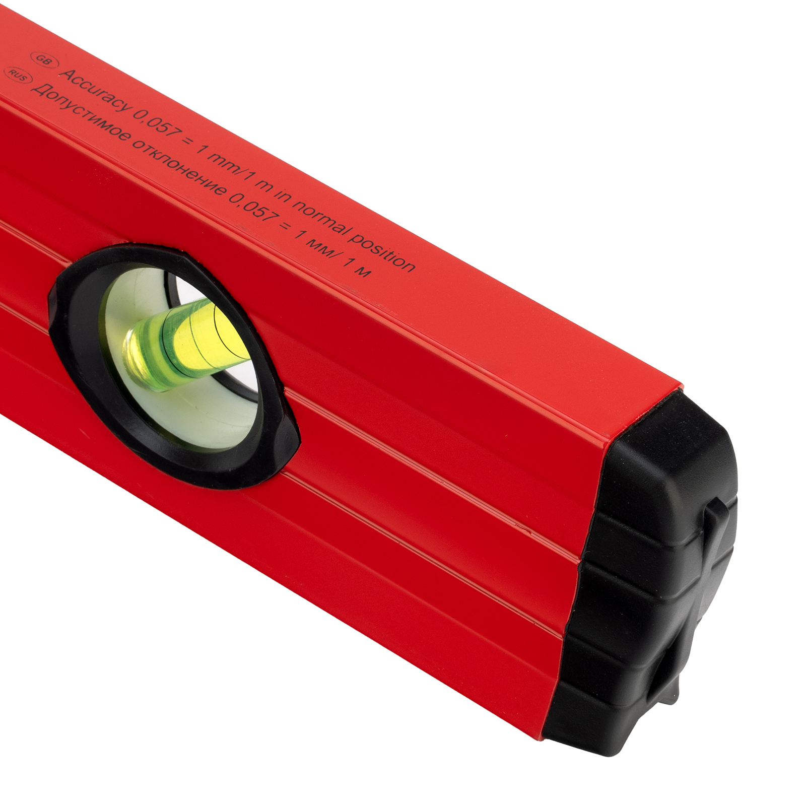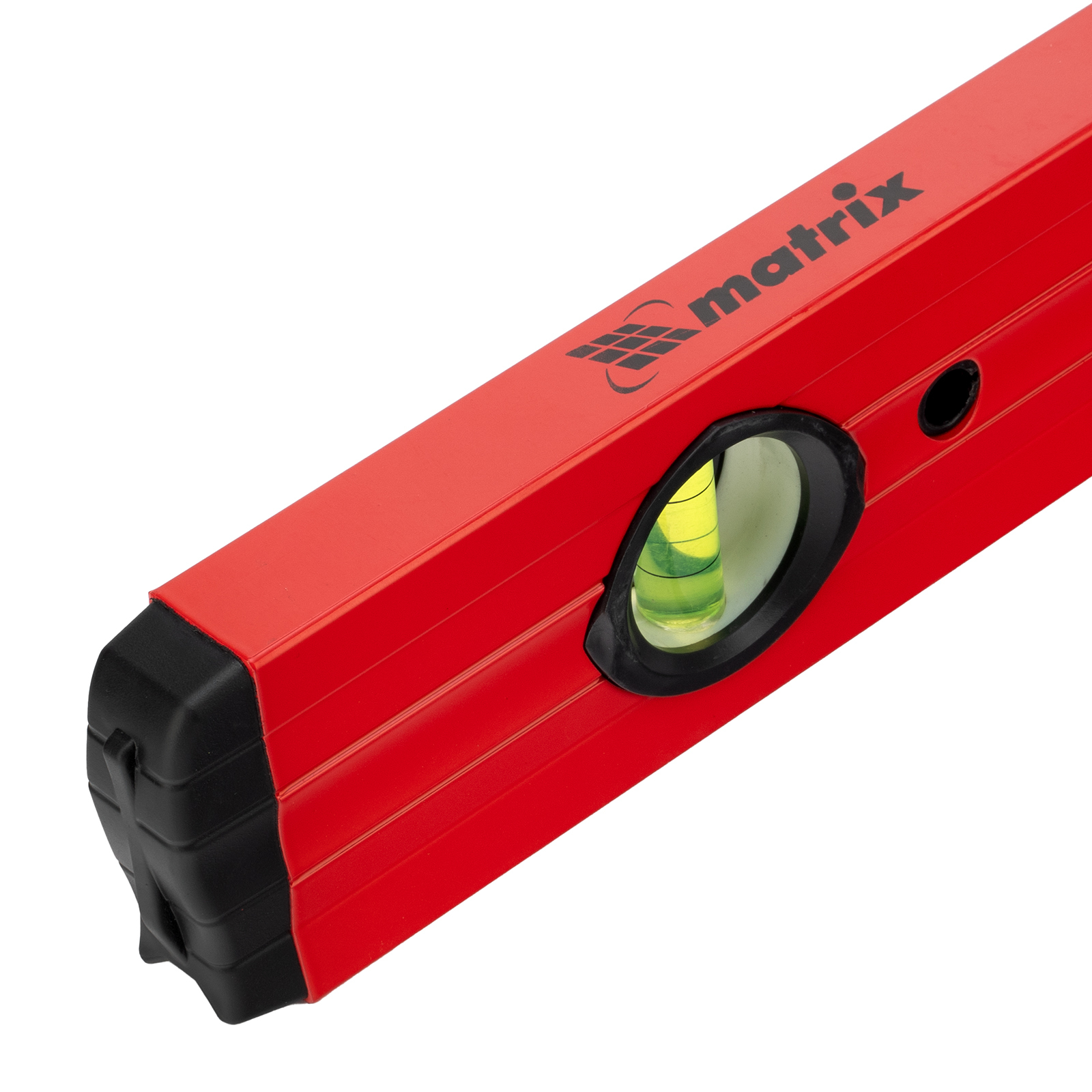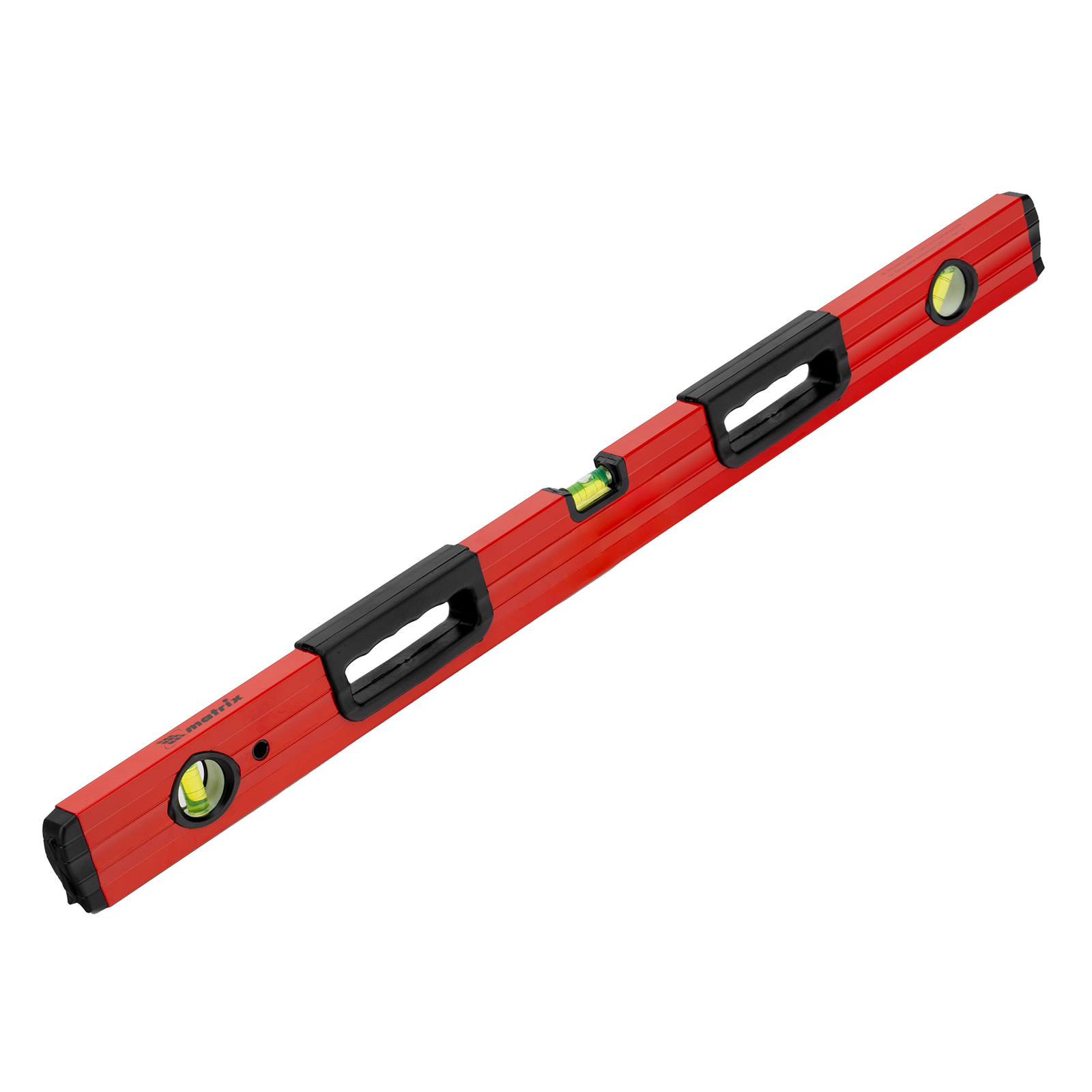 Фрезерованный алюминиевый уровень Matrix 33224 длиной 800 мм, с 3 глазками и 2 эргономичными ручками, поможет проверить горизонтальные и вертикальные поверхности, выставить угол 45 градусов. Он будет полезен на любом этапе строительства и ремонта: при облицовке и отделке поверхностей, монтаже конструкций и т.д. Погрешность измерений на метр не превышает 1 мм (0,057 градуса).,Для определения отклонения вертикали 90 градусов необходимо использовать пузырьковую ампулу только в верхнем положении уровня. Только базовая поверхность является рабочей (противоположная ампуле 180 градусов).