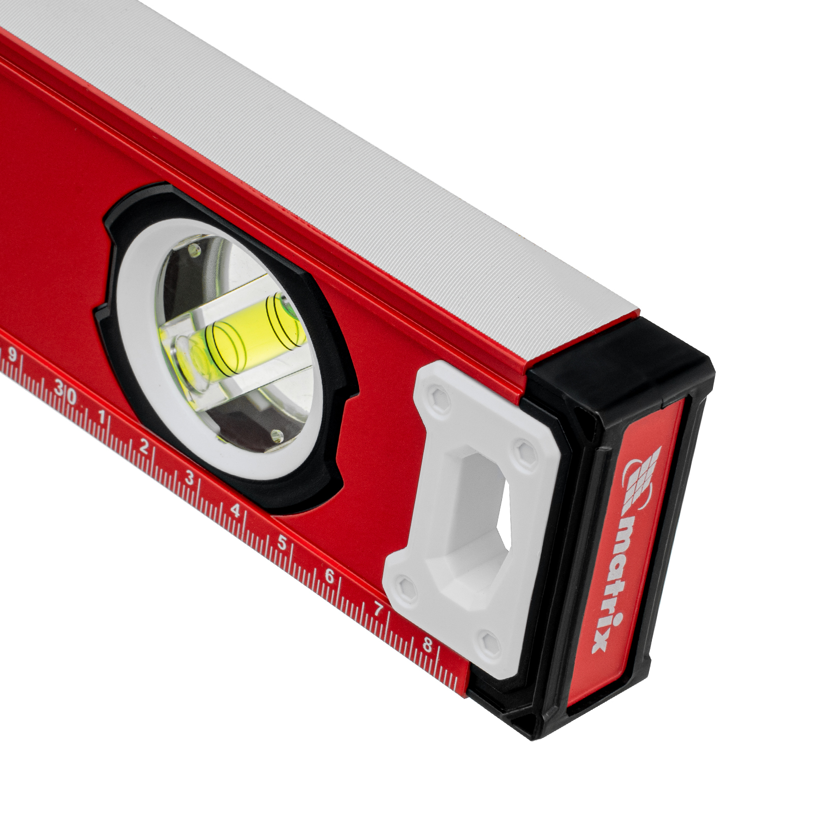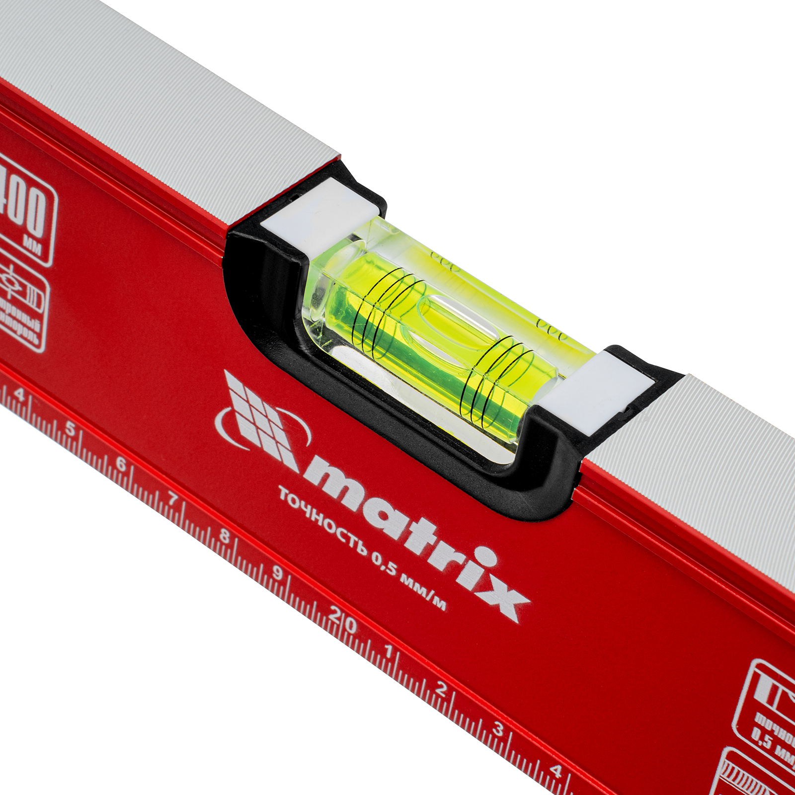 Уровень алюминиевый фрезерованный Matrix 34200 длиной 400 мм, с 3 глазками, предназначен для определения отклонений от горизонтальной и вертикальной поверхностей и угла 45°. Обеспечивает высокую точность полученных результатов, пригодится для выполнения строительных и отделочных работ.