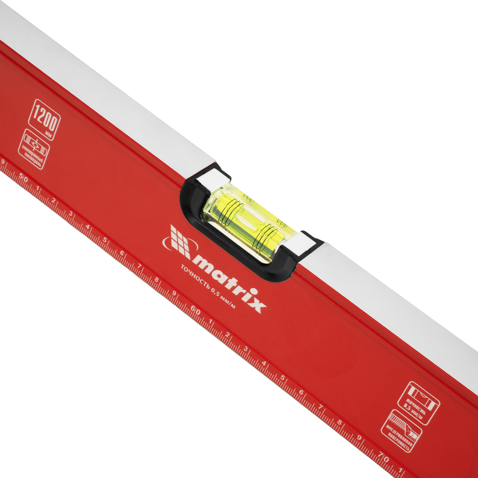 Уровень алюминиевый, фрезерованный, 3 глазка, рукоятки, 1200 мм Matrix