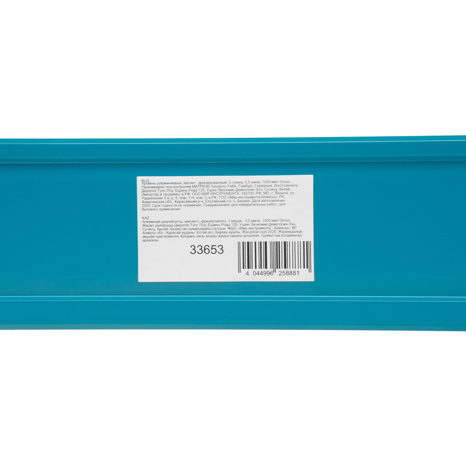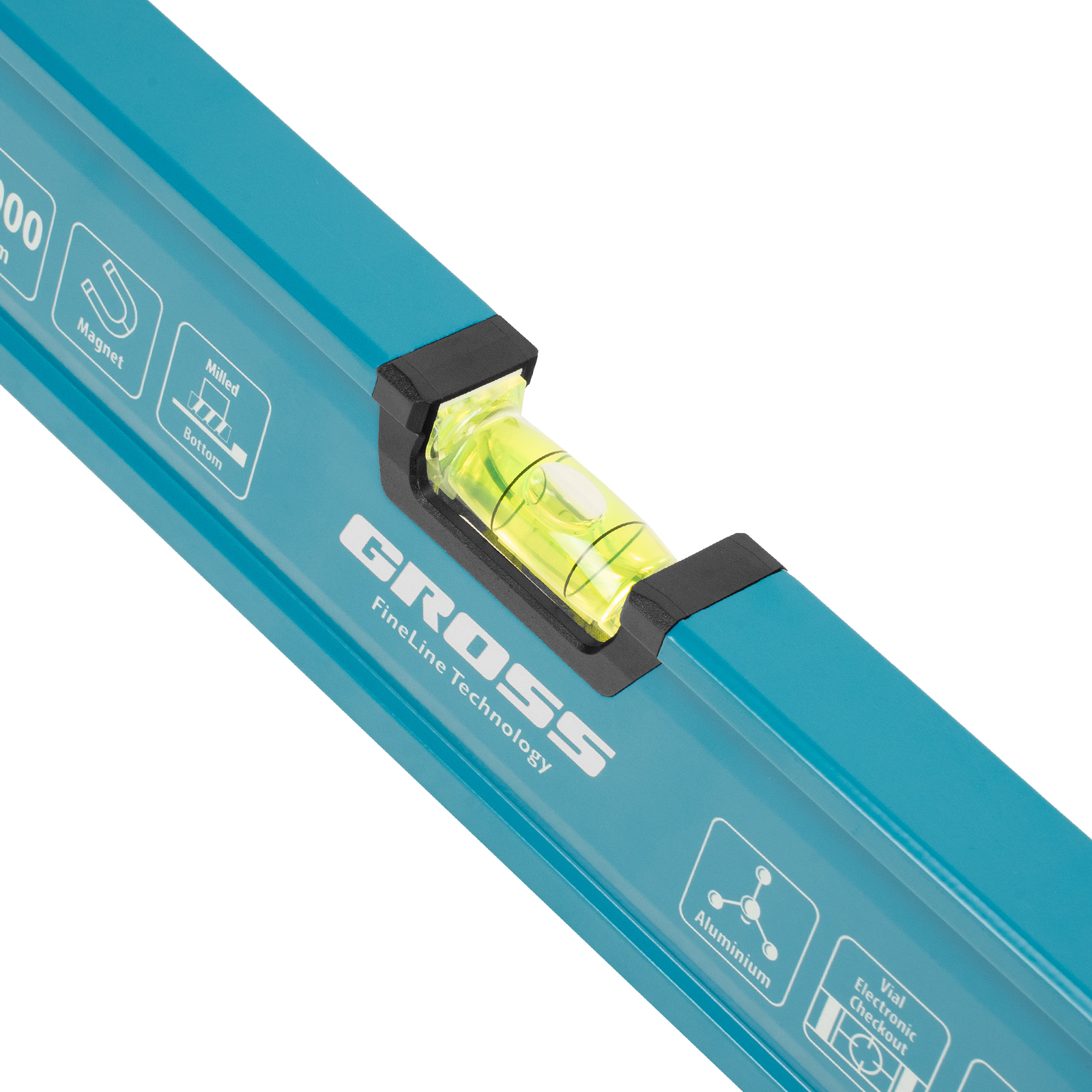 Уровень алюминиевый, магнит., фрезерованный, 3 глазка, 0,5 мм/м, 1000 мм Gross