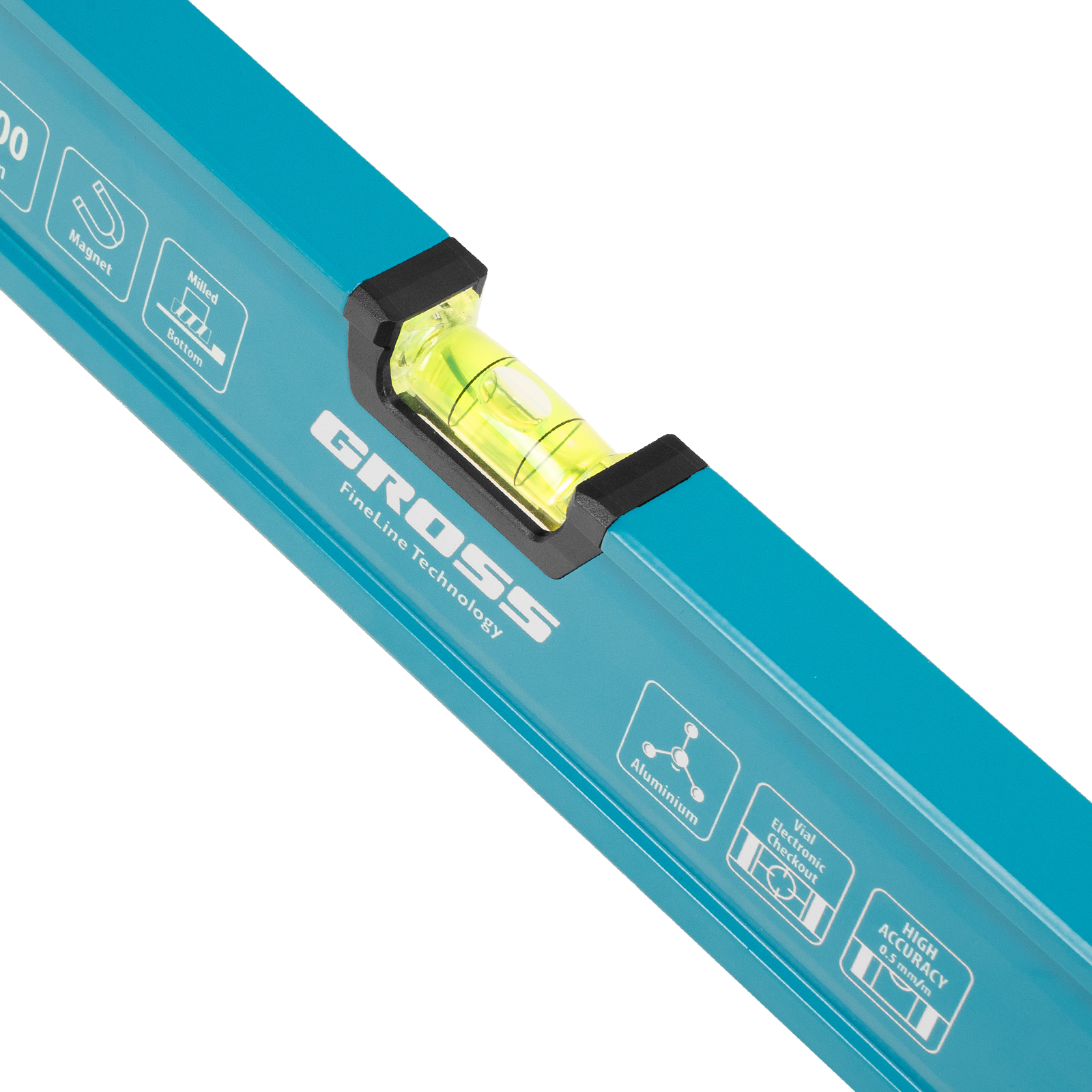 Уровень алюминиевый, магнит., фрезерованный, 3 глазка, 0,5 мм/м, 800 мм Gross