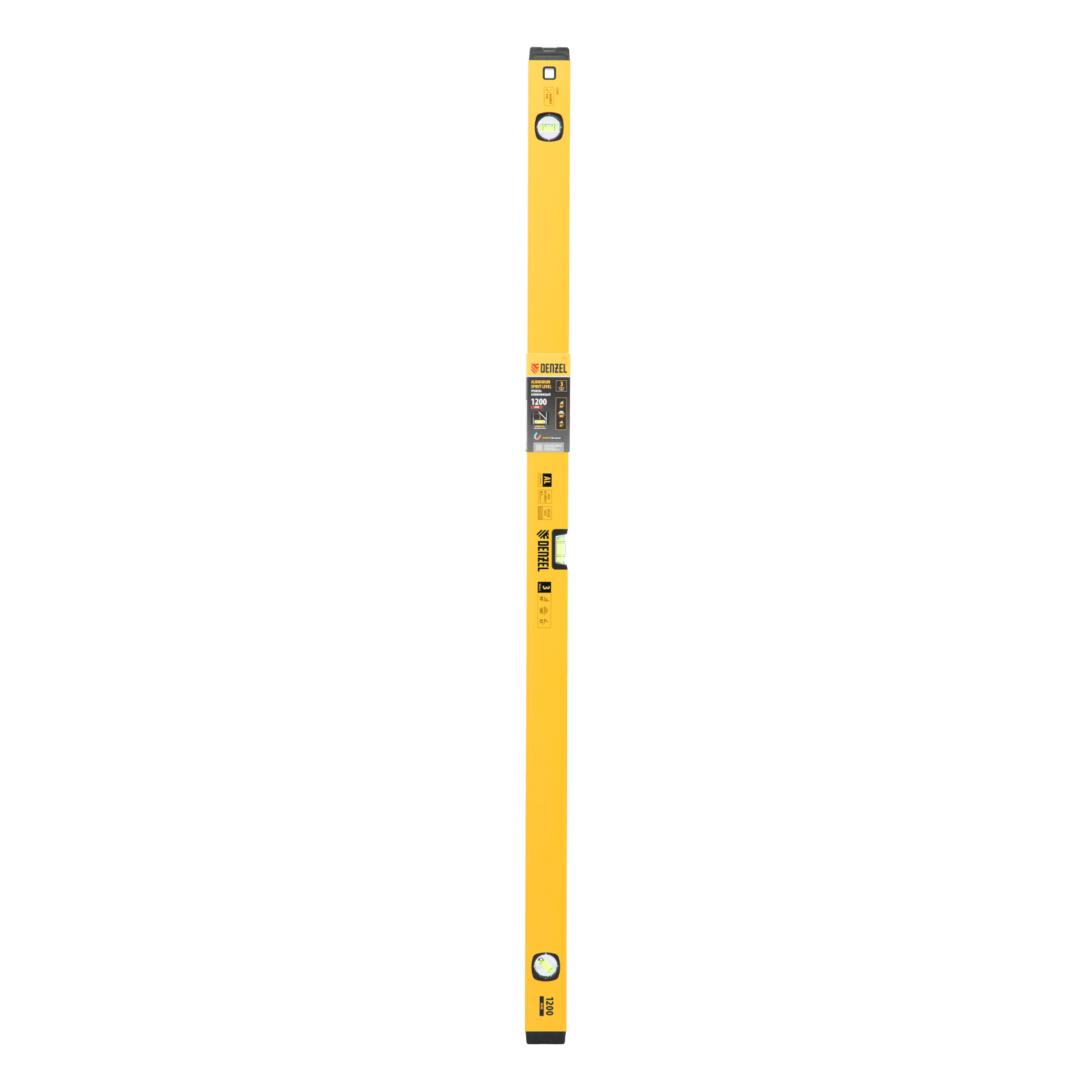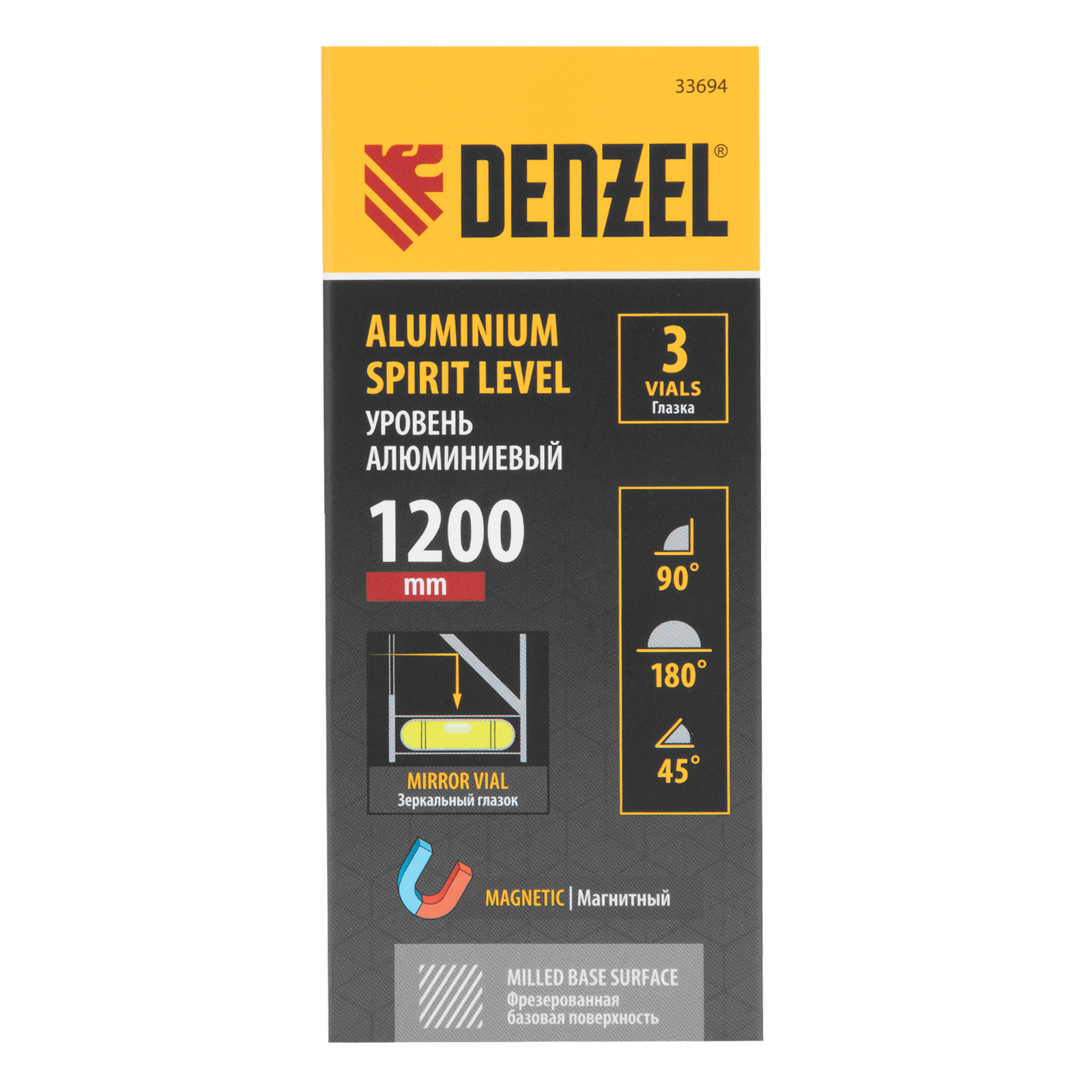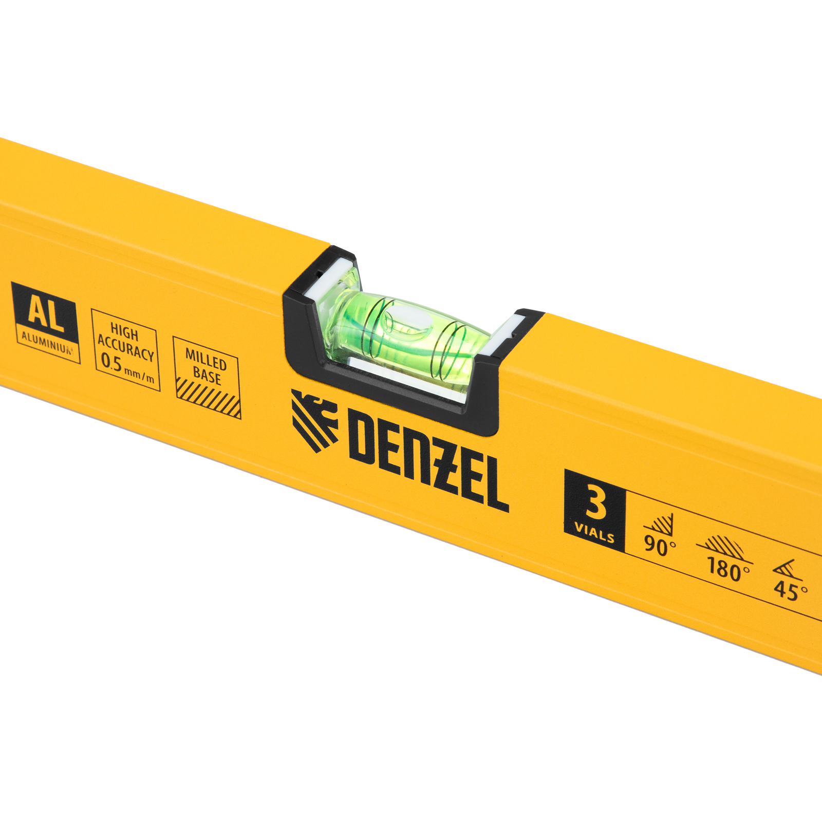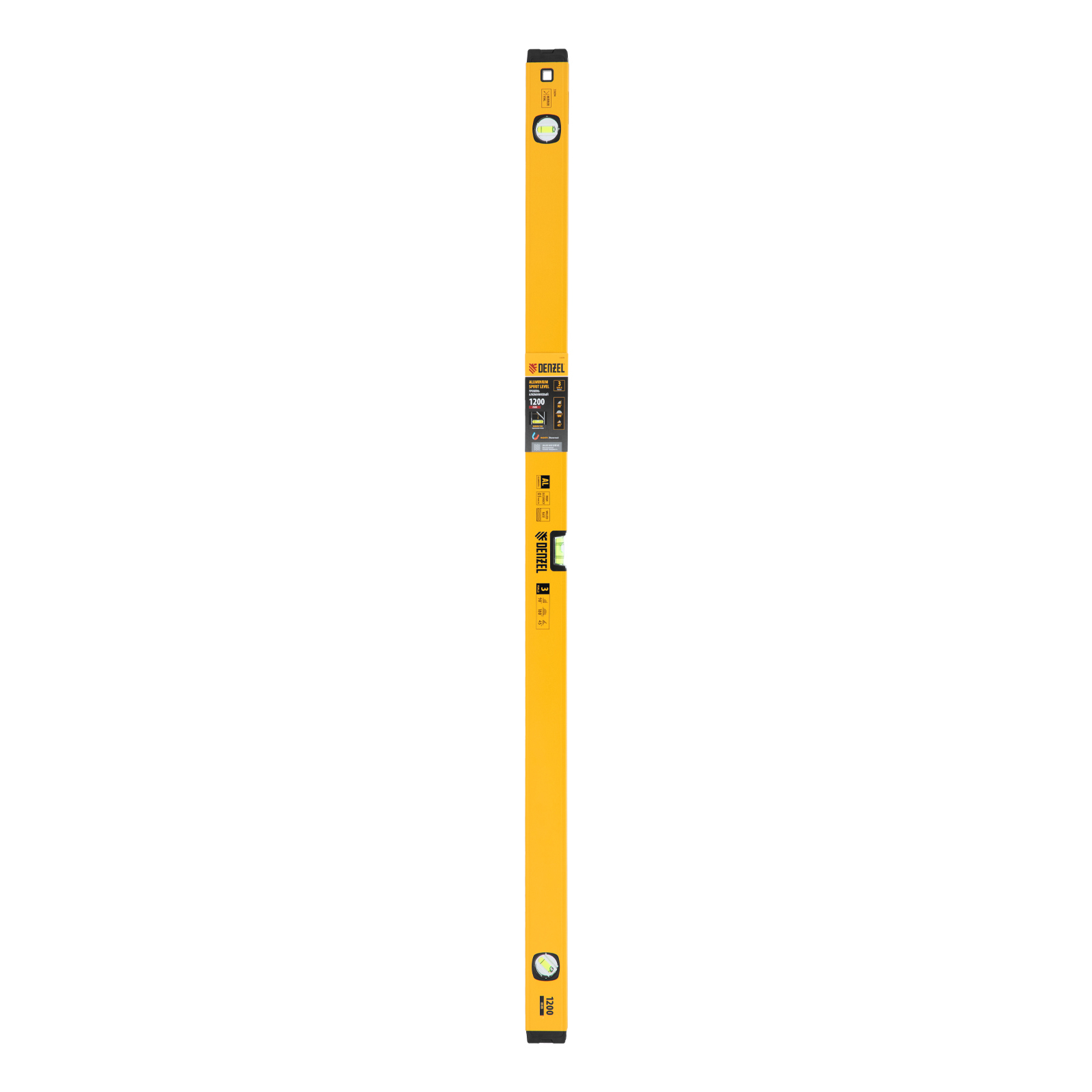 Уровень алюминиевый, магнит, фрезерованный, 3 глазка (1 зеркал.) 0,5 мм/м, 1200 мм Denzel