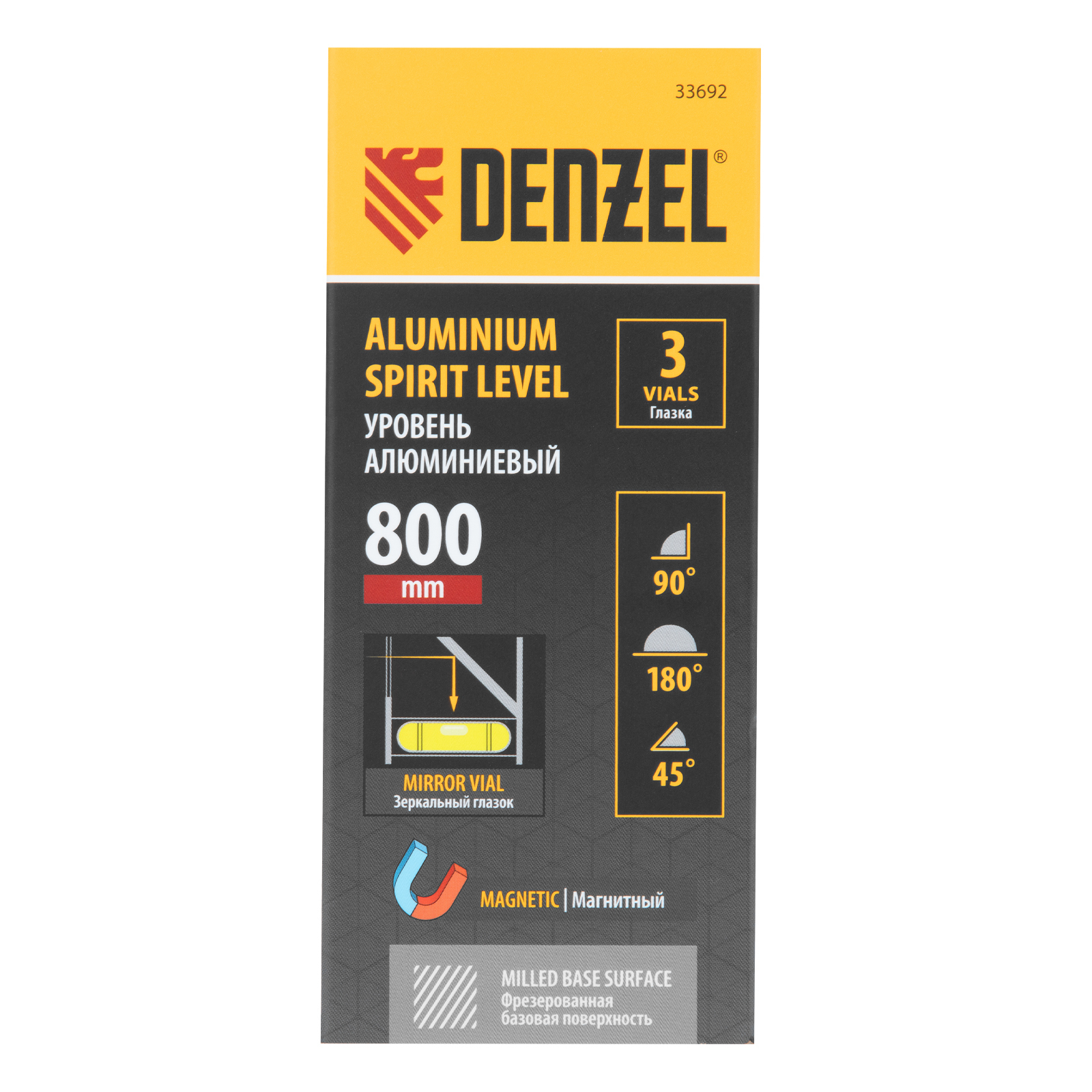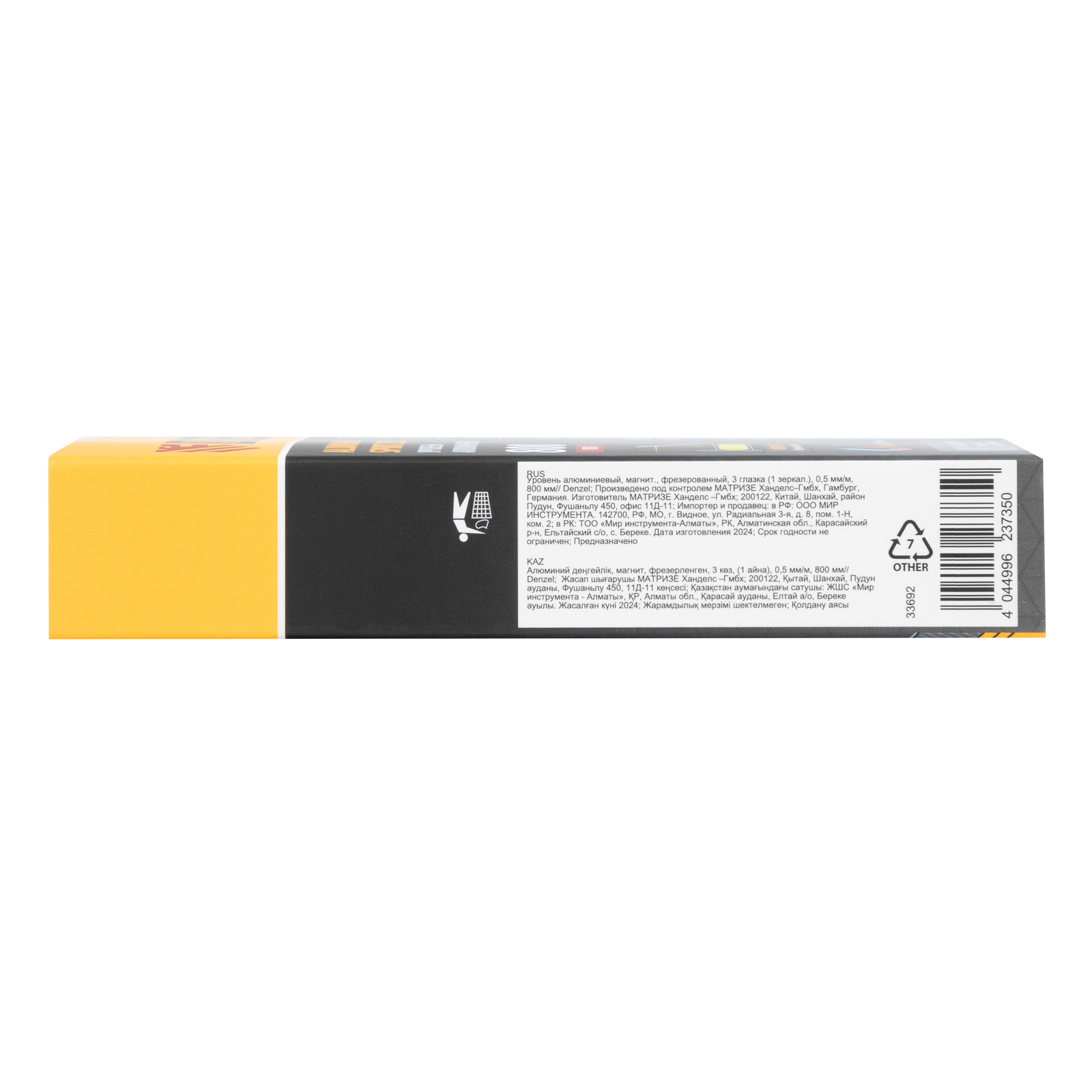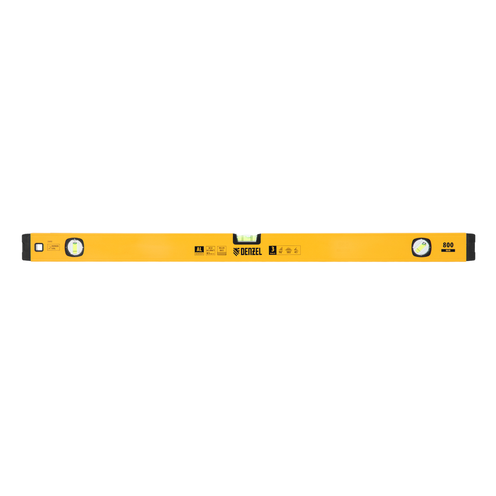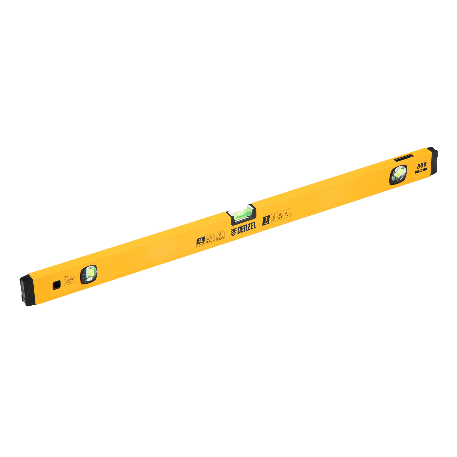 Уровень алюминиевый, магнит, фрезерованный, 3 глазка (1 зеркал.) 0,5 мм/м, 800 мм Denzel