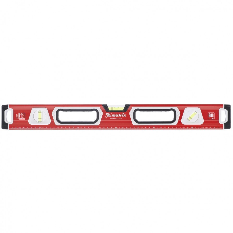Уровень алюминиевый фрезерованный Matrix 34734 длиной 1200 мм, с магнитной полосой и 2-компонентными рукоятками, 3 глазками и 1 зеркальным отражателем, — измерительный инструмент для контроля отклонений поверхностей от горизонтали, вертикали и угла 45°. Используется для выполнения работ, требующих высокой точности.