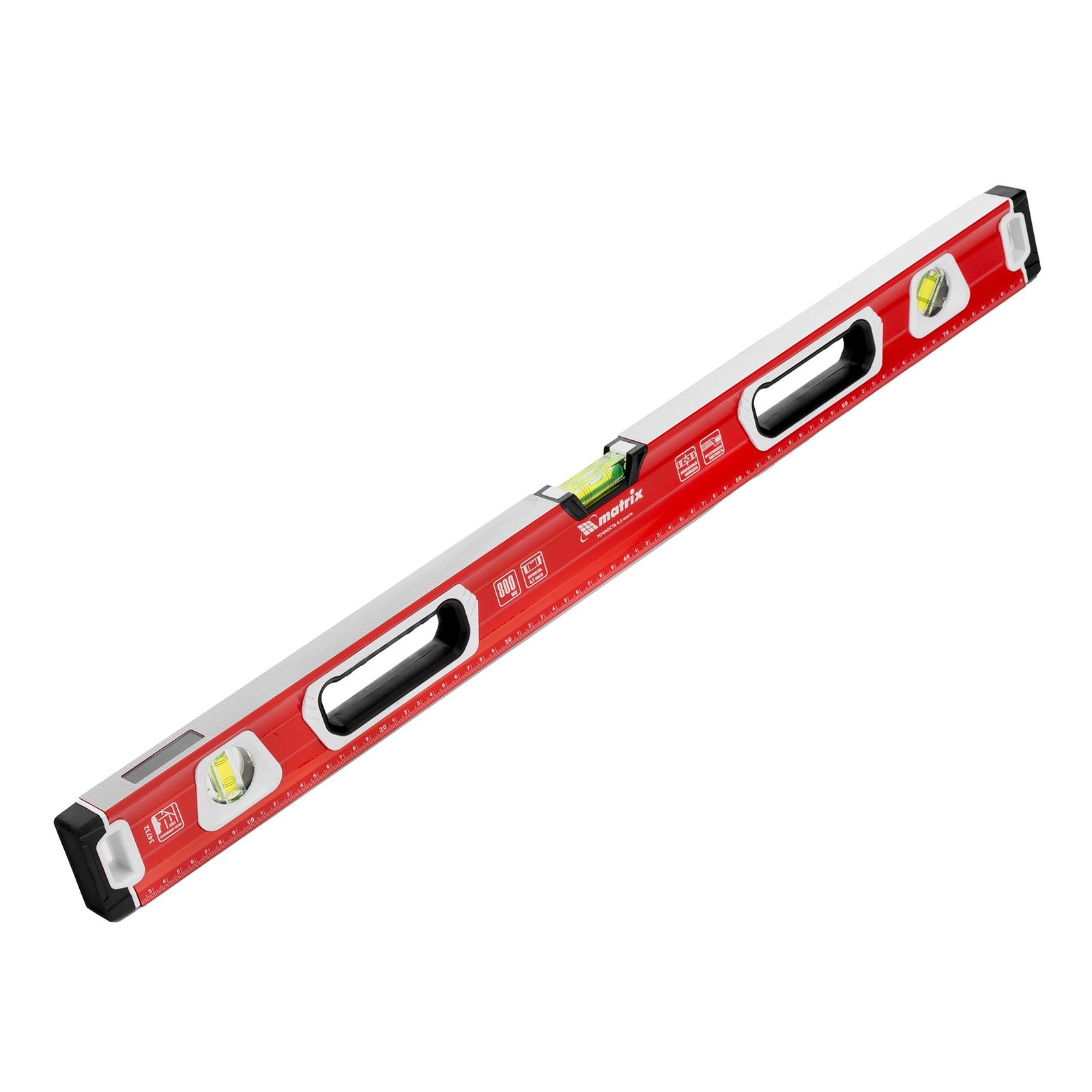 Уровень алюминиевый фрезерованный Matrix 34732 длиной 800 мм, с магнитной полосой и 2-компонентными рукоятками, 3 глазками и 1 зеркальным отражателем, — измерительный инструмент для контроля отклонений поверхностей от горизонтали, вертикали и угла 45°. Используется для выполнения работ, требующих высокой точности.
