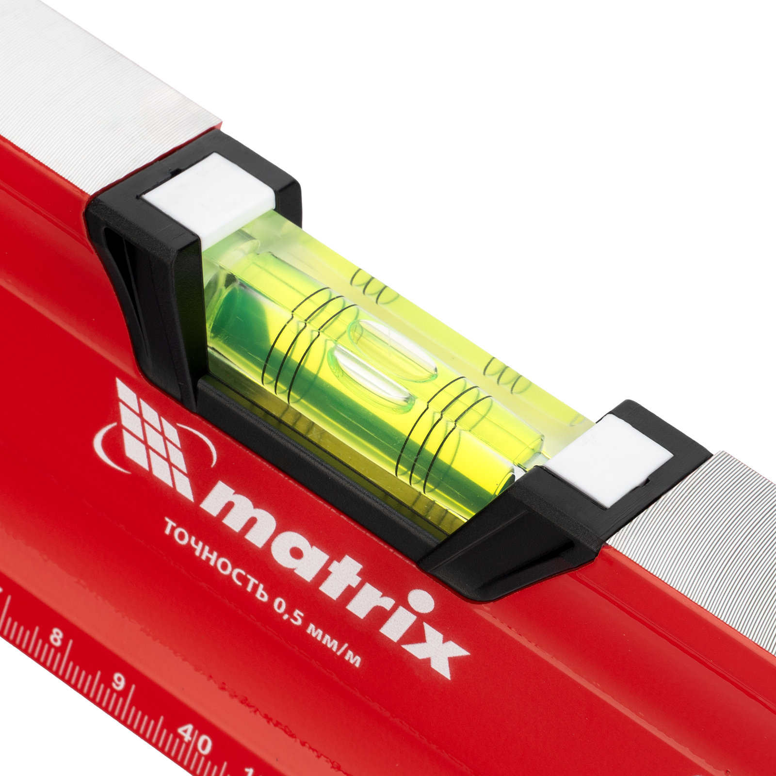 Уровень алюминиевый, магнит, фрезерованный, 3 глазка (1 зеркальный) двухкомпонентные рукоятки, 800 мм Matrix