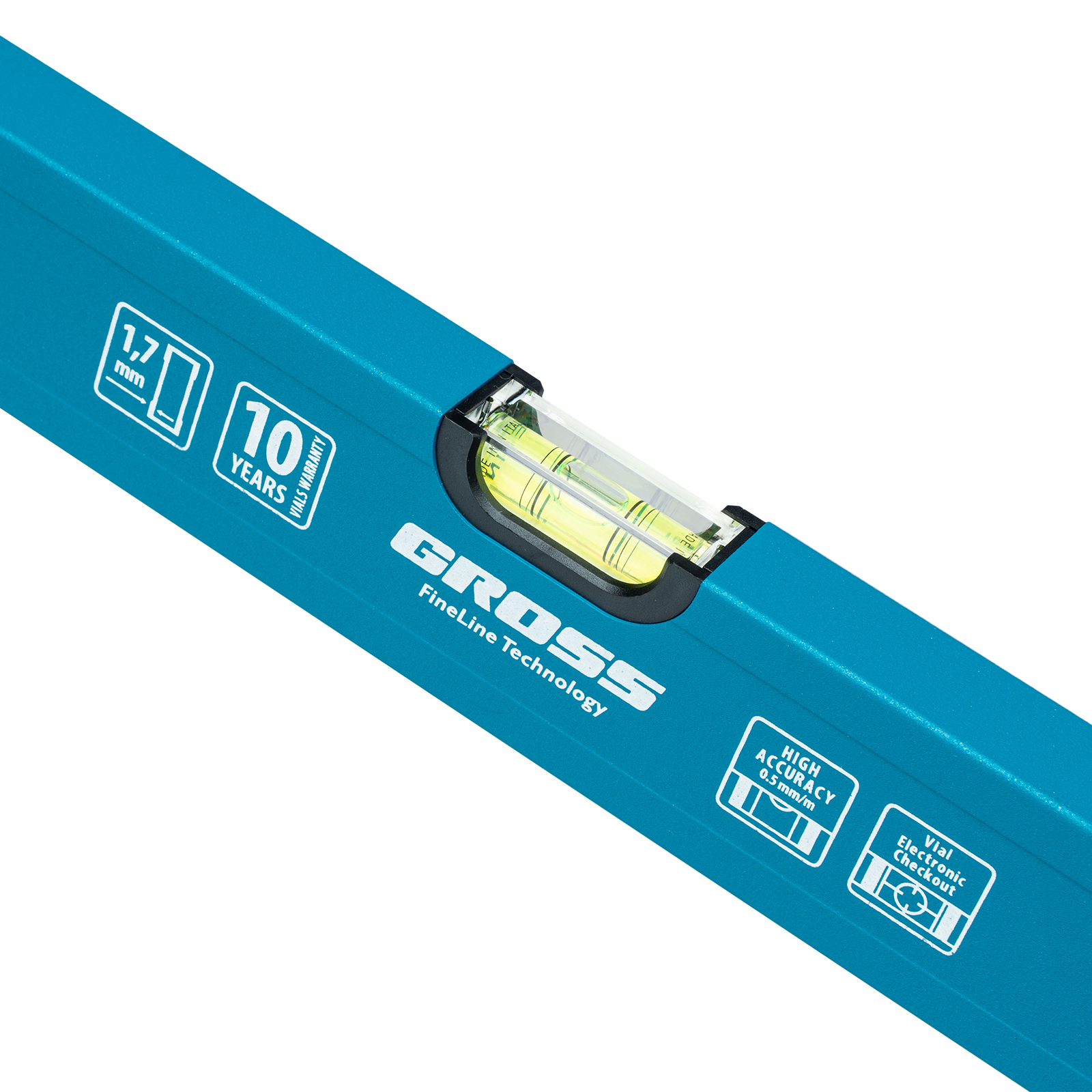 Уровень алюминиевый усиленный, 2000 мм, 3 глазка Gross