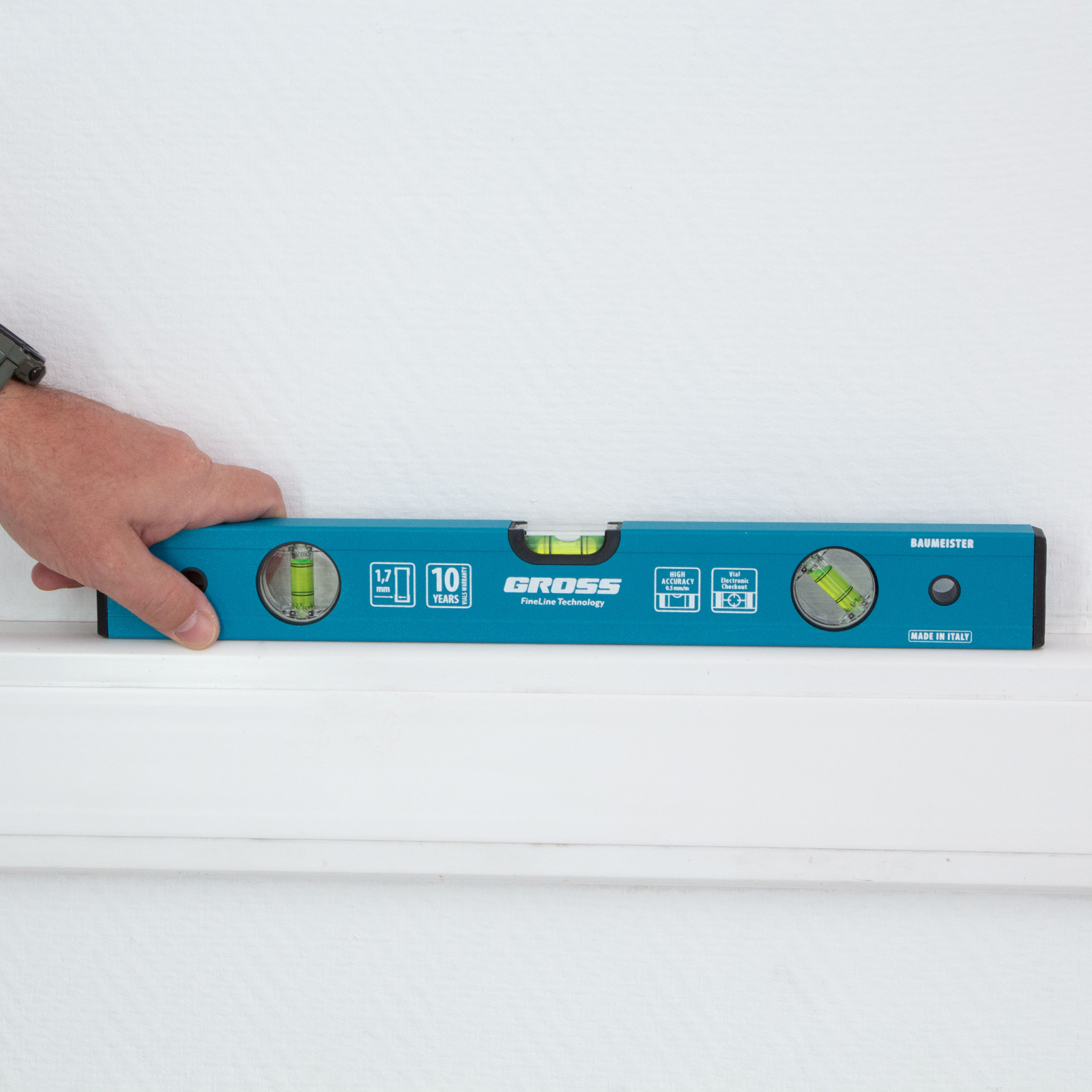Для определения отклонения вертикали 90° необходимо использовать пузырьковую ампулу только в верхнем положении уровня. Только базовая поверхность является рабочей (противоположная ампуле 180°).