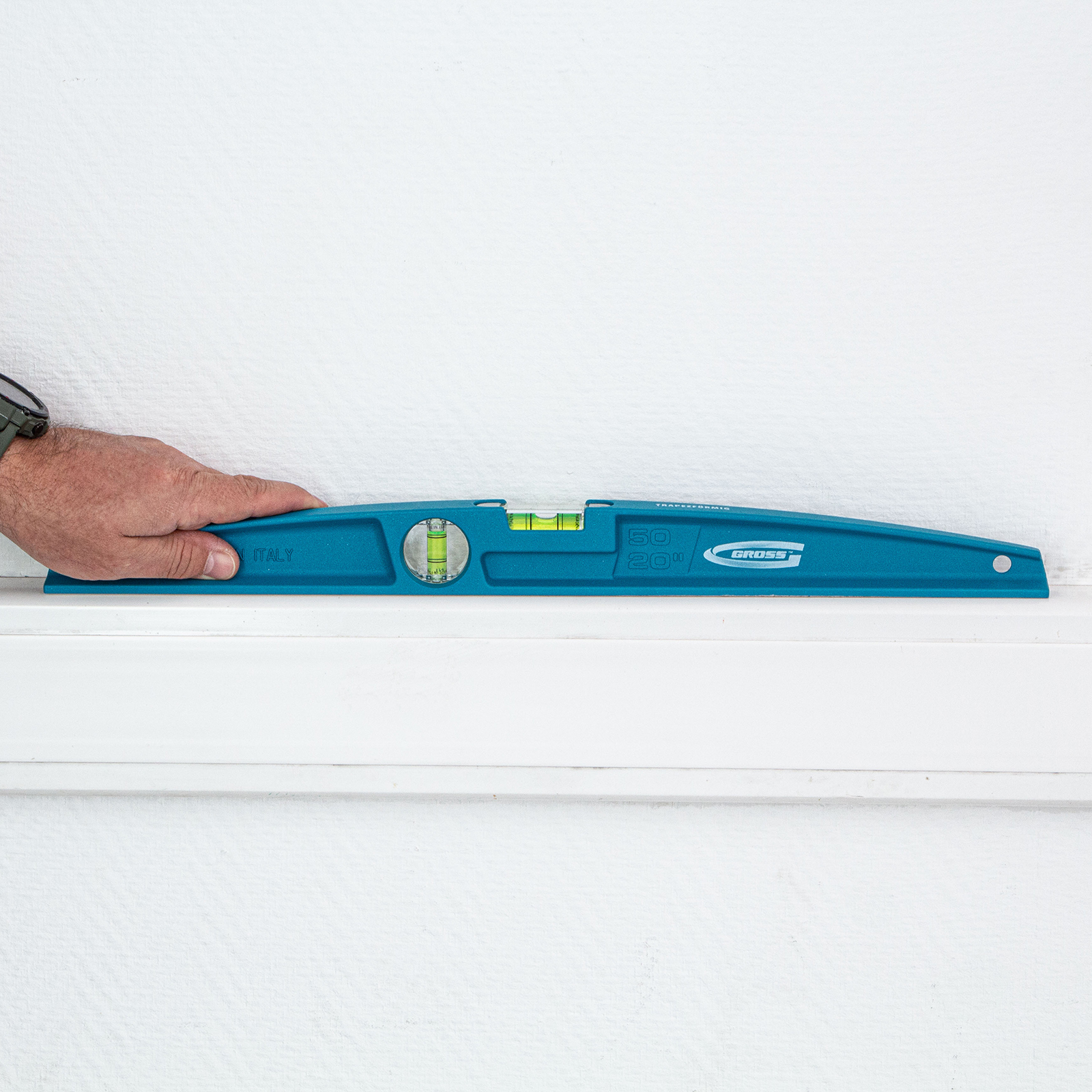 Литой уровень Gross 34915 длиной 500 мм снабжен 2 глазками для построения вертикали и горизонтали. Инструмент оптимально подходит для использования при укладке напольной и настенной плитки, кирпичной кладки, брусчатки и т.д.
