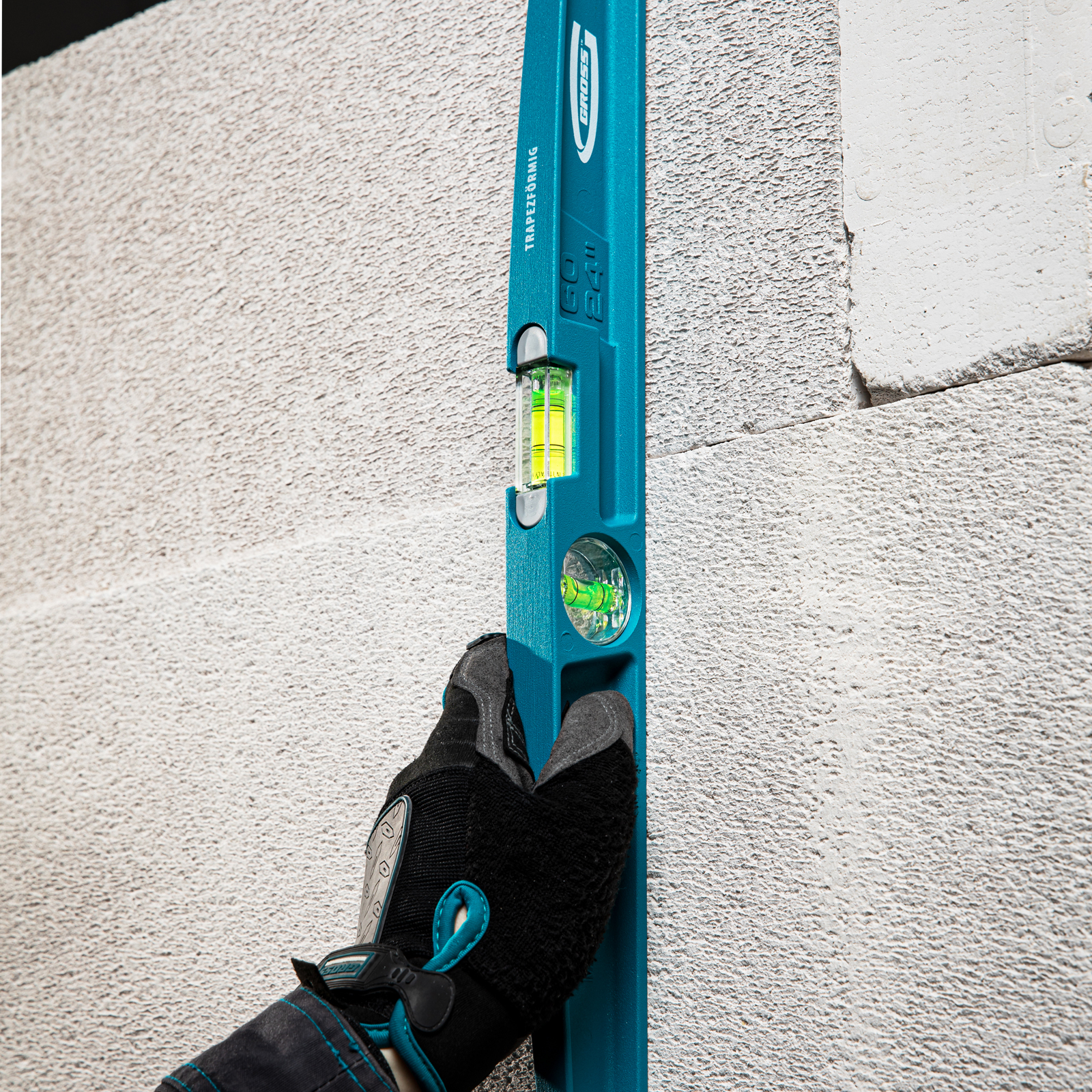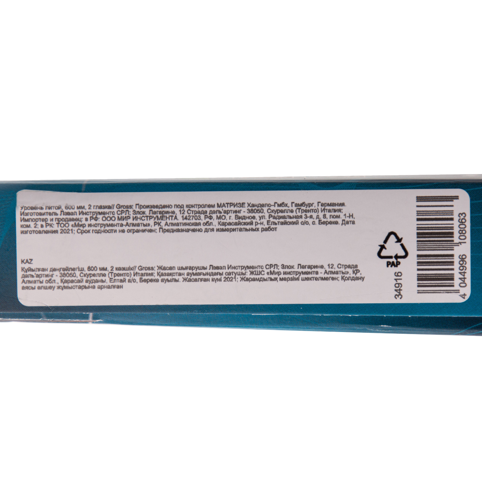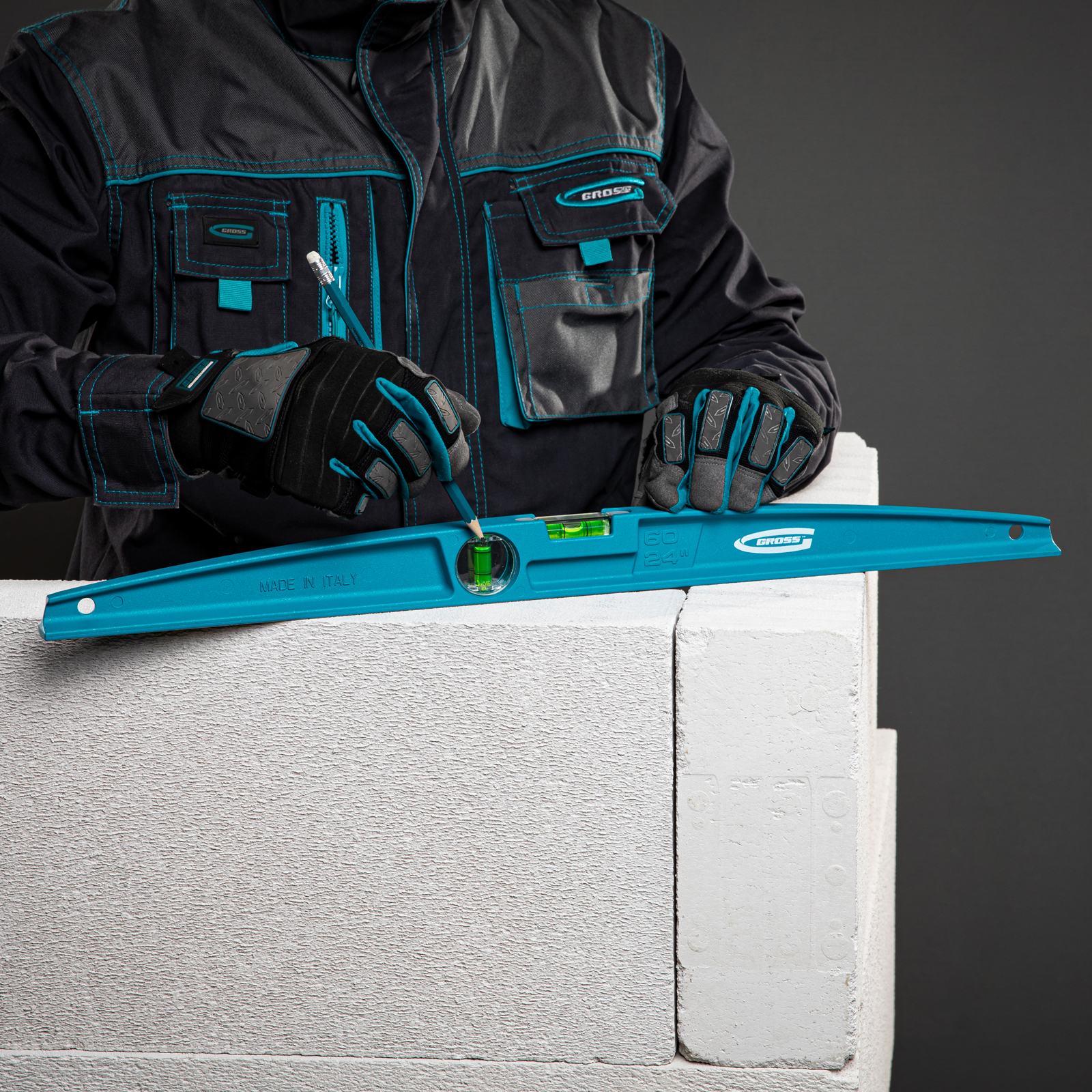 Литой уровень Gross 34916 длиной 600 мм снабжен 2 глазками для построения вертикали и горизонтали. Инструмент оптимально подходит для использования при укладке напольной и настенной плитки, кирпичной кладки, брусчатки и т.д.