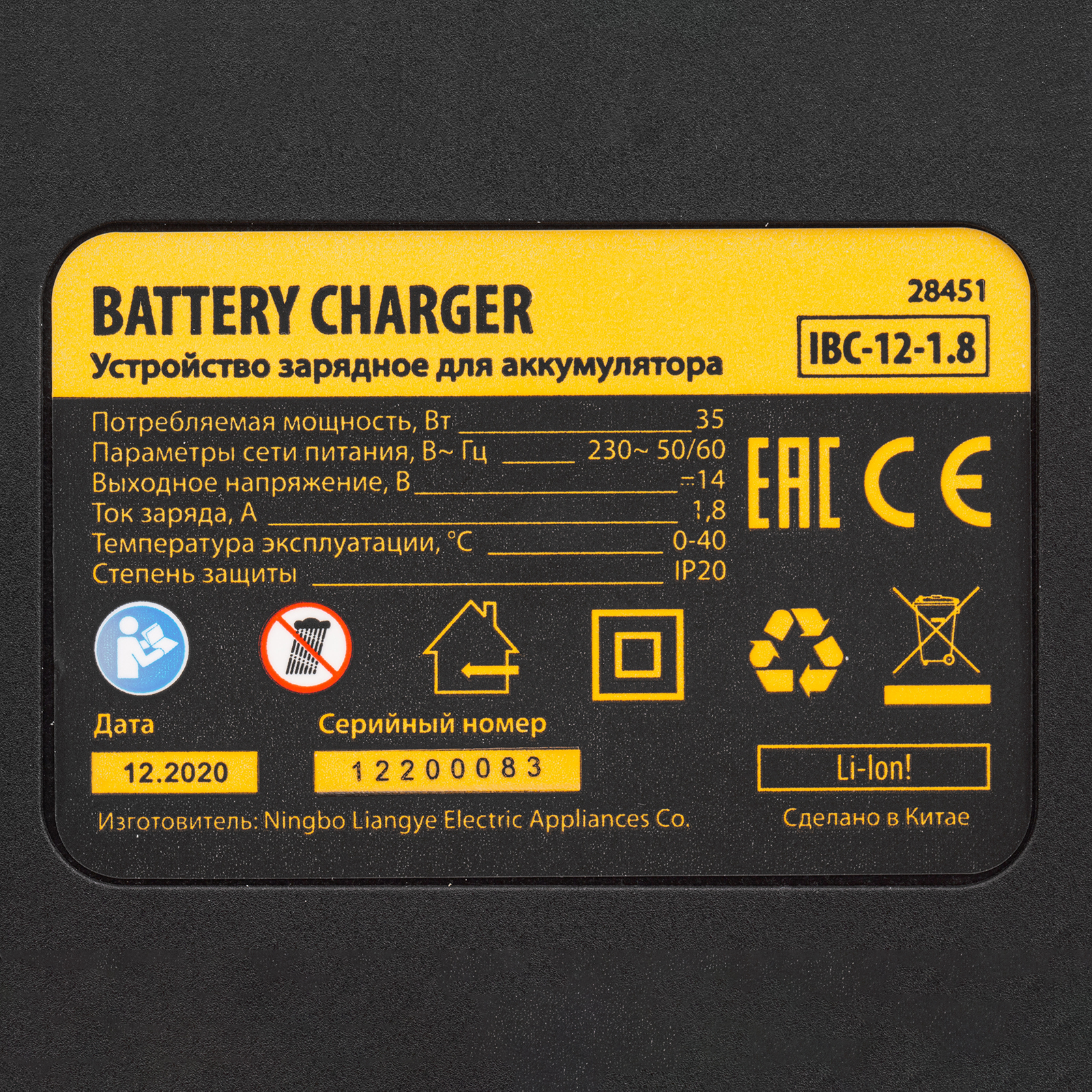 Устройство зарядное для аккумуляторов IBC-12-1.8, Li-Ion, 12 В, 1.8 А Denzel