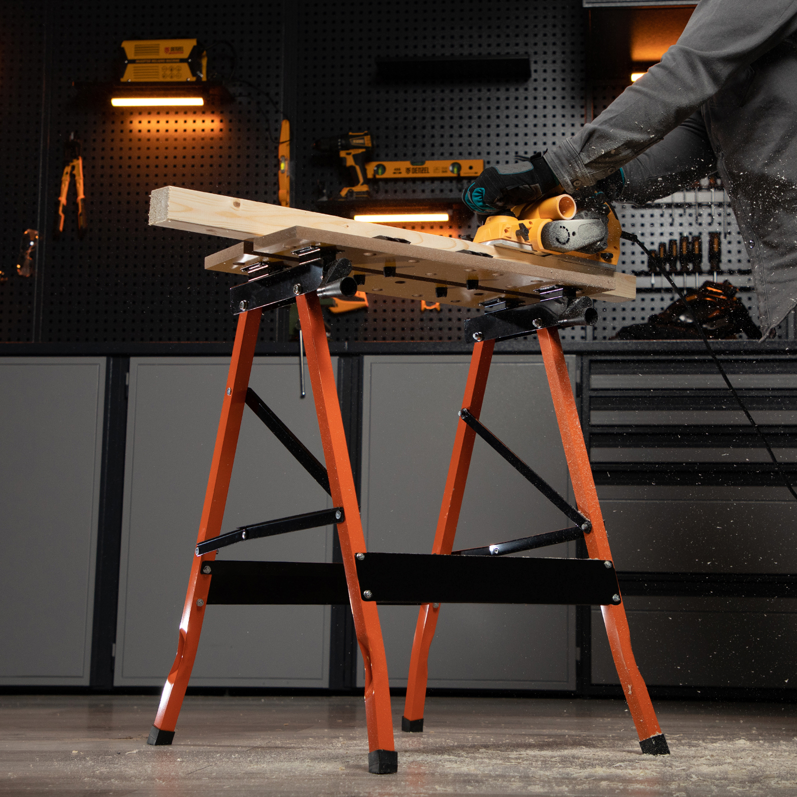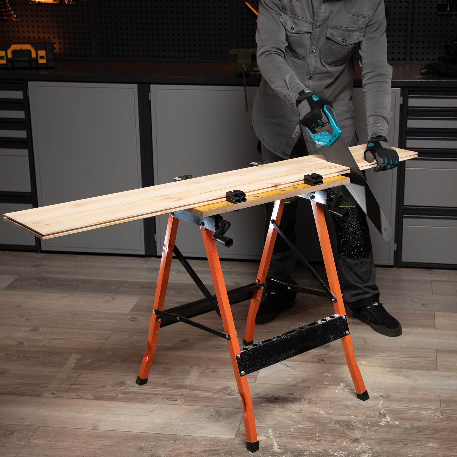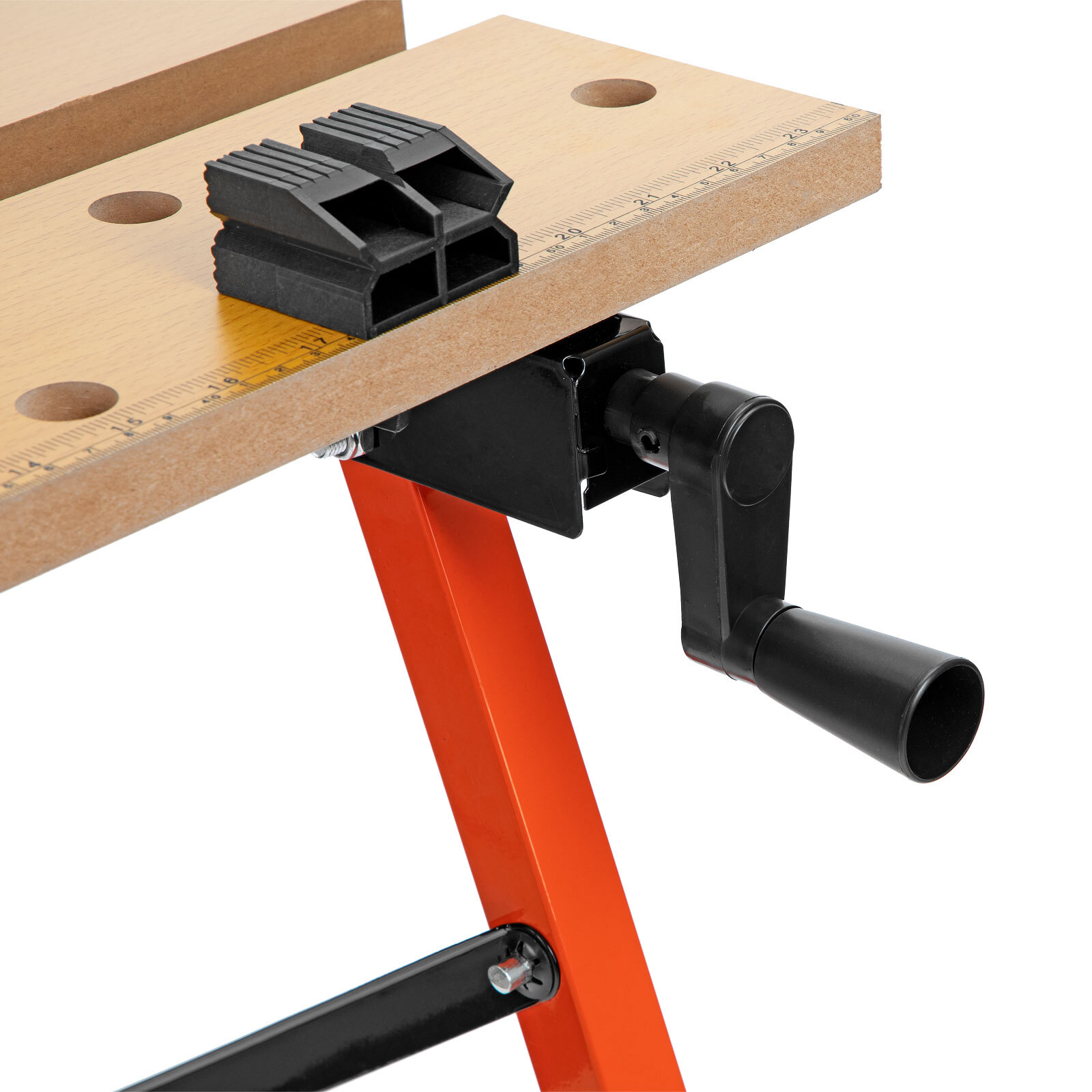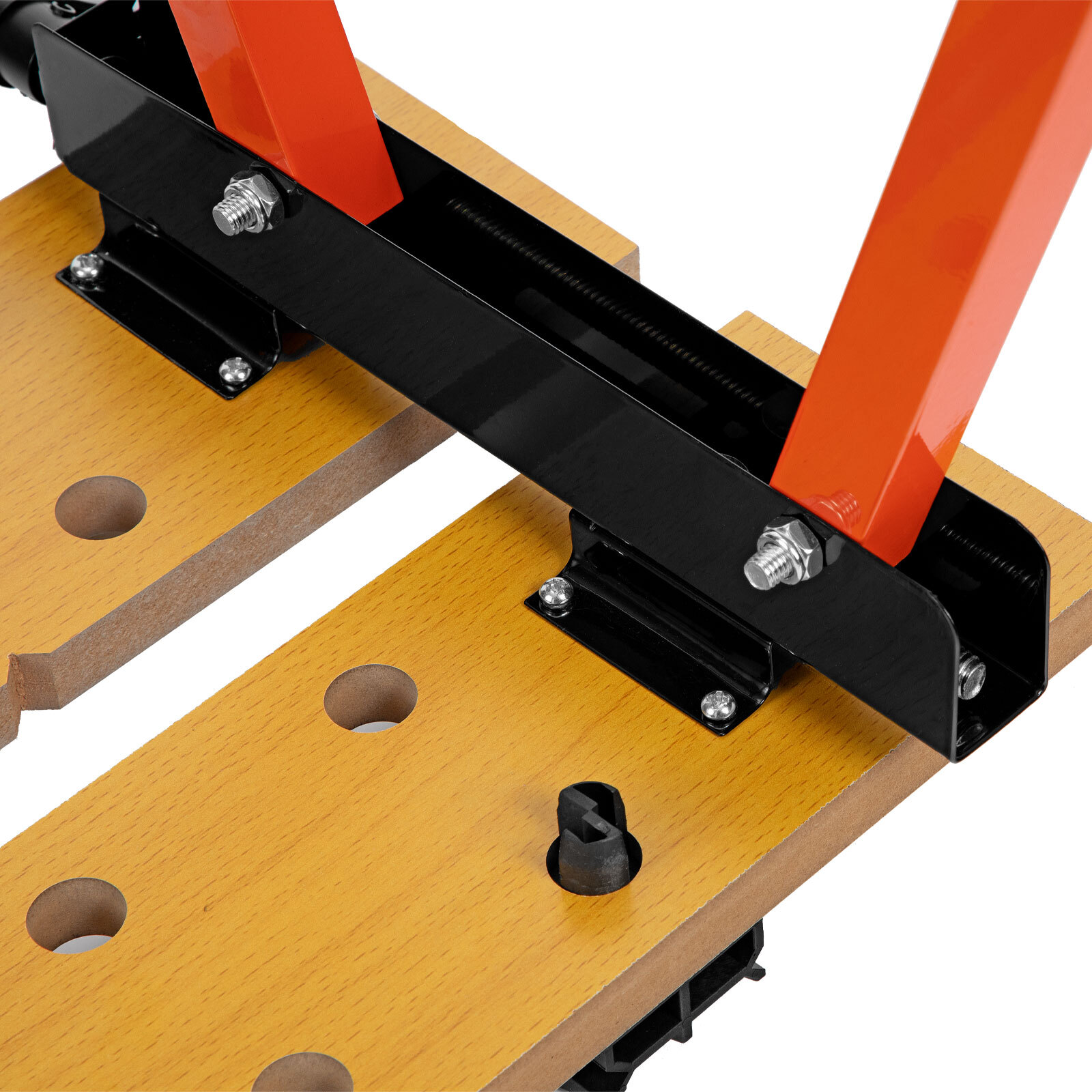 Портативный верстак-тиски Sparta 257055 размером 640 х 520 х 790 мм служит для зажимания заготовок и используется для выполнения столярных и слесарных работ. Столешница представляет собой тиски из двух раздельных блоков, которые позволяют фиксировать даже детали с непараллельными гранями. Верстак пригодится дома и в частной мастерской. Установку необходимо осуществлять на ровной поверхности для максимальной устойчивости и исключения травм из-за несоблюдения техники безопасности.