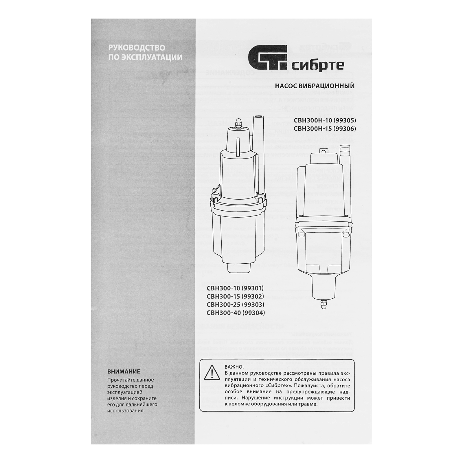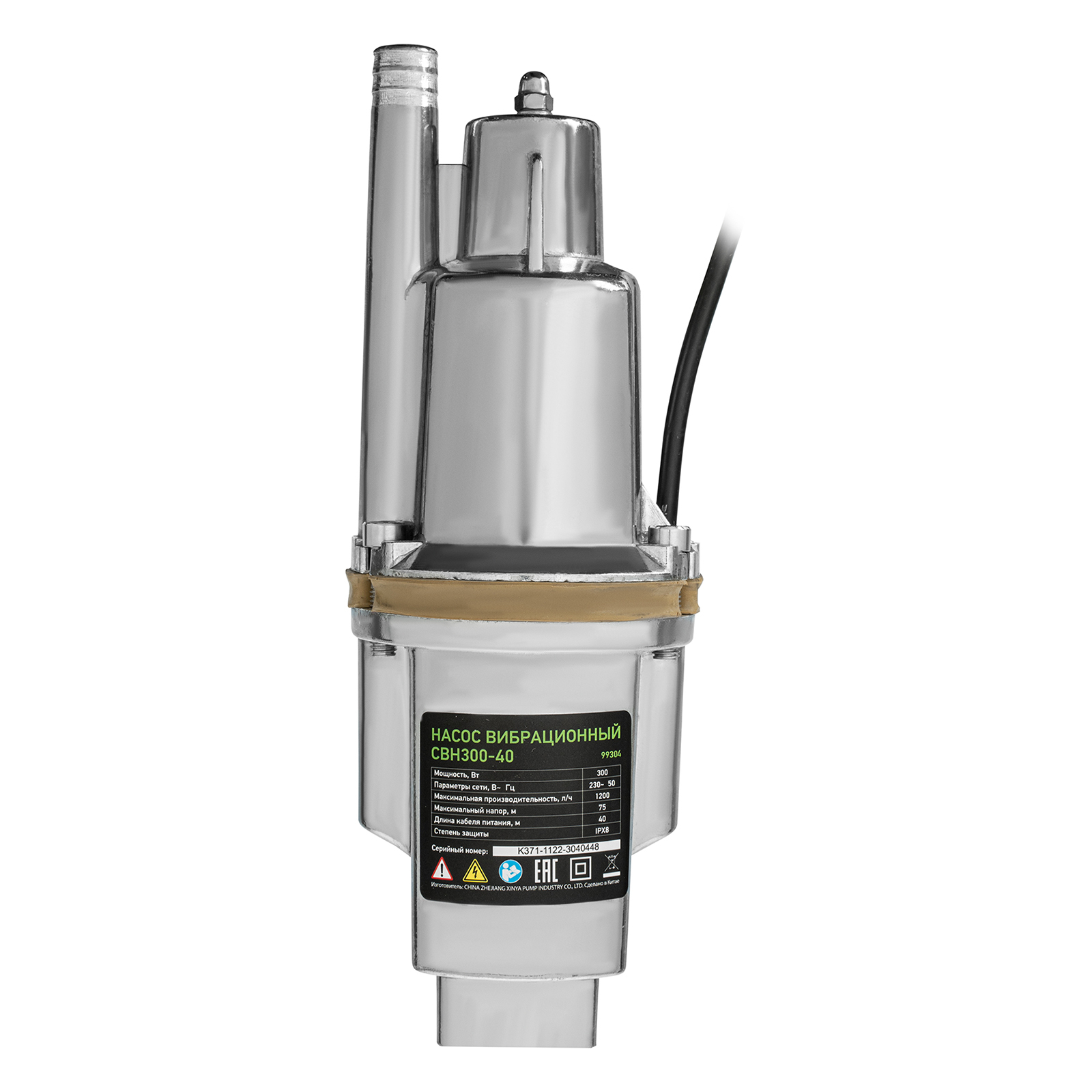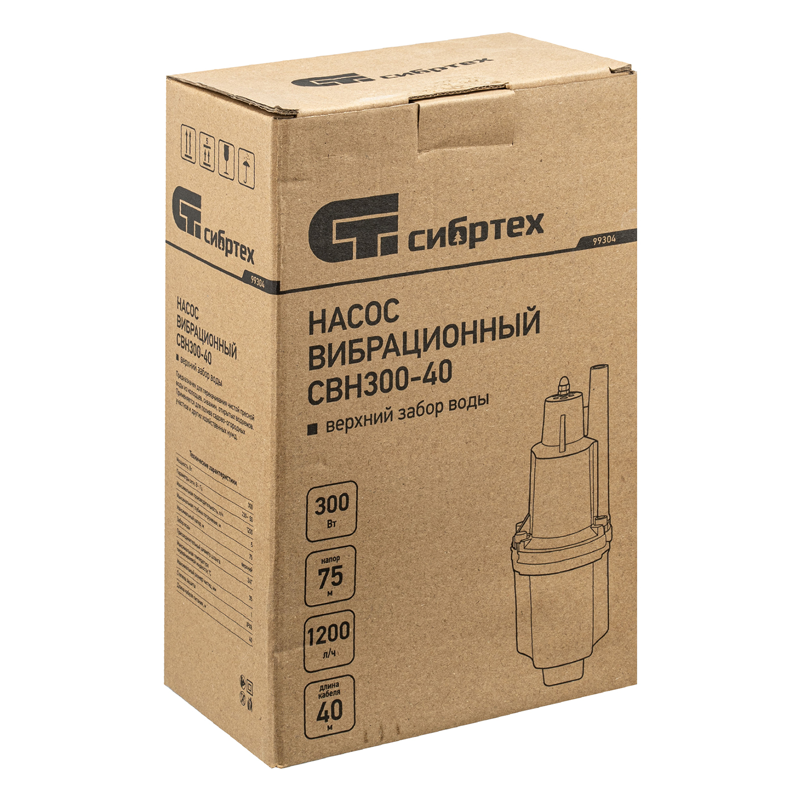 Вибрационный насос СВН300-40, верхний забор, 300 Вт, напор 75 м, 1200 л/ч, кабель 40 м Сибртех