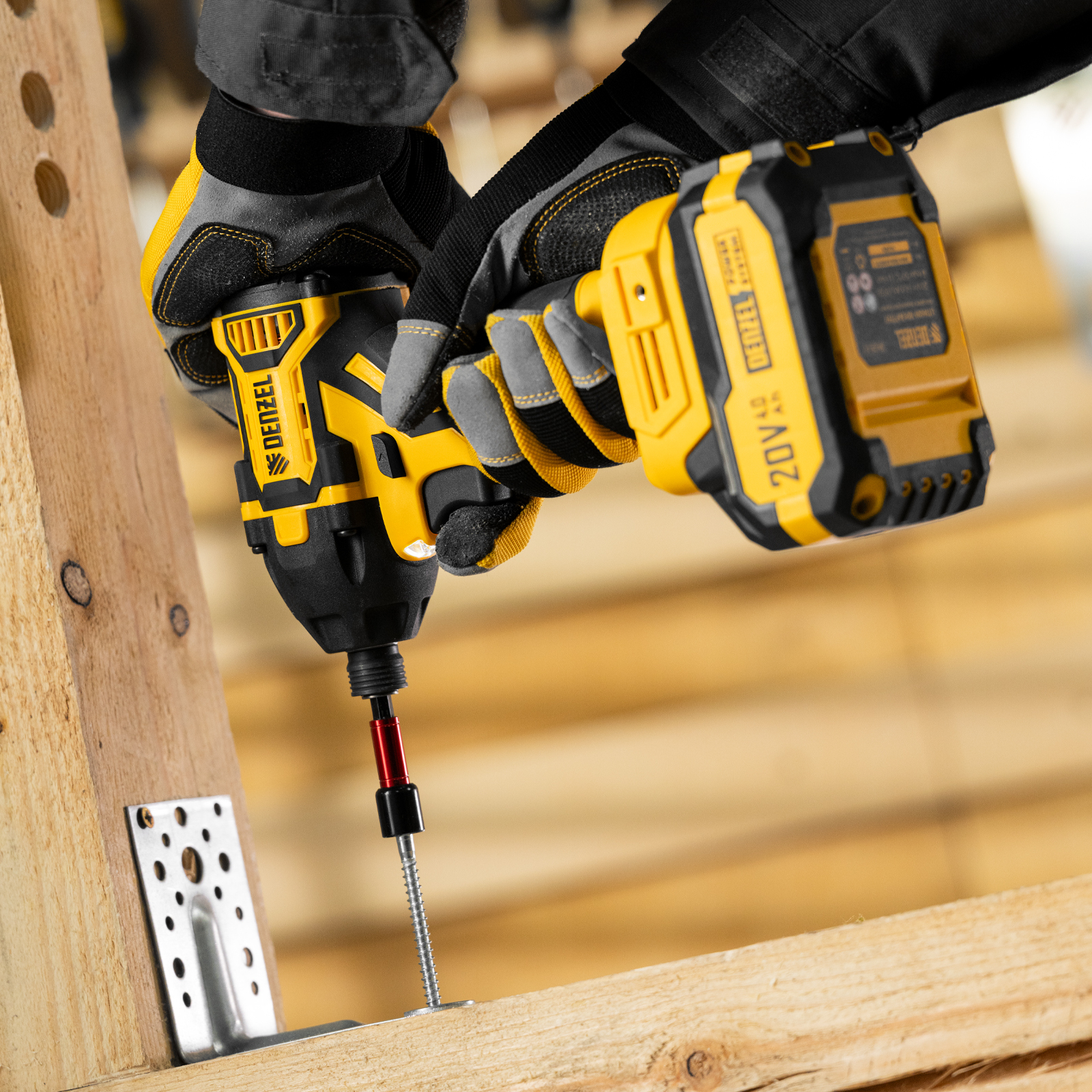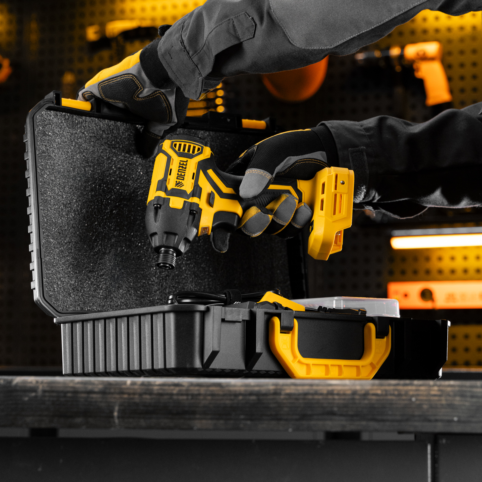 - Универсальность — аккумулятор Li-Ion емкостью 4 А·ч совместим со всеми инструментами единой платформы Denzel Power System 20V.