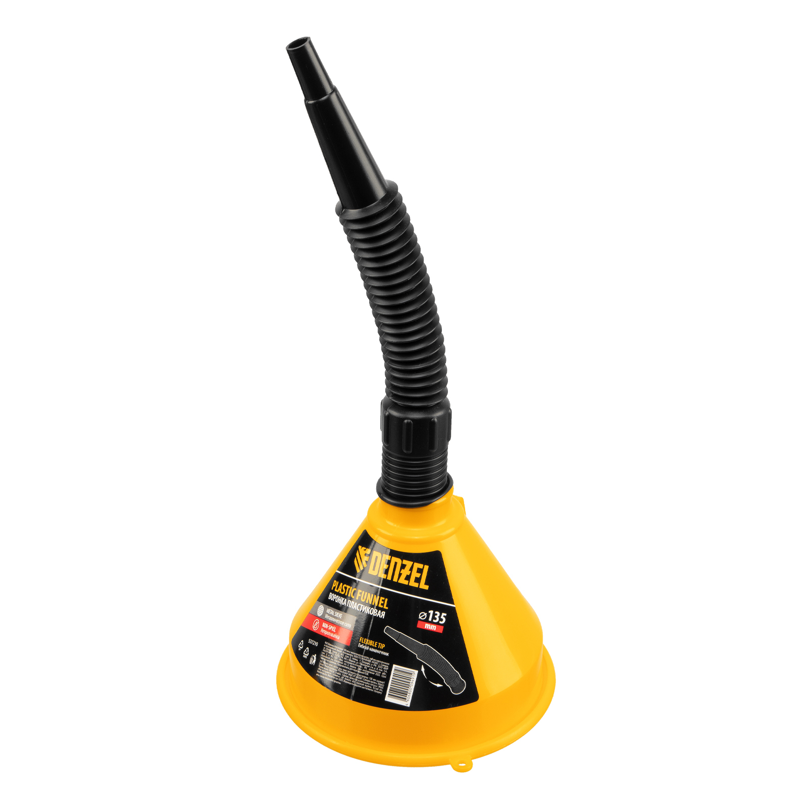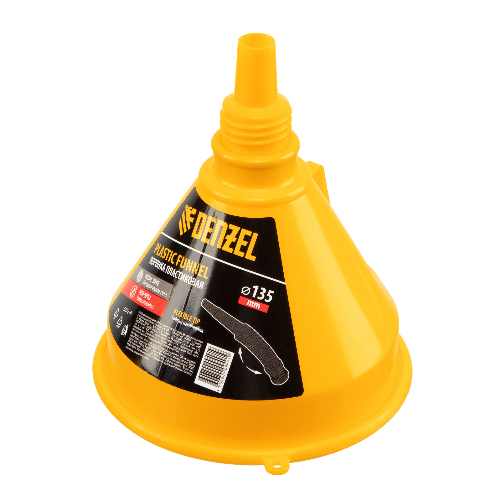 Воронка пластиковая 135 мм с металлическим ситом, гибким наконечником и непроливайкой Denzel