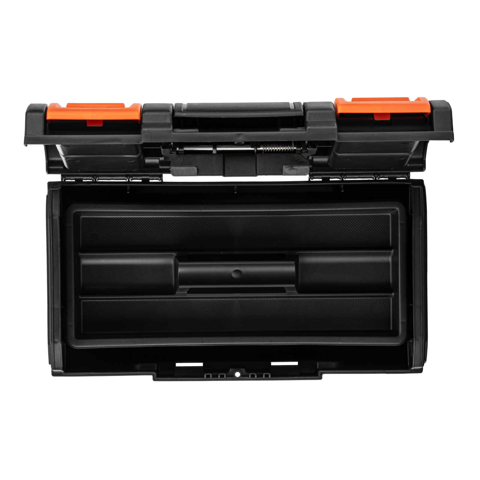 - Упорядоченное хранение крепежа и мелких деталей — в крышке имеются специальные органайзеры, также в комплект поставки входит съемный лоток с ручкой.