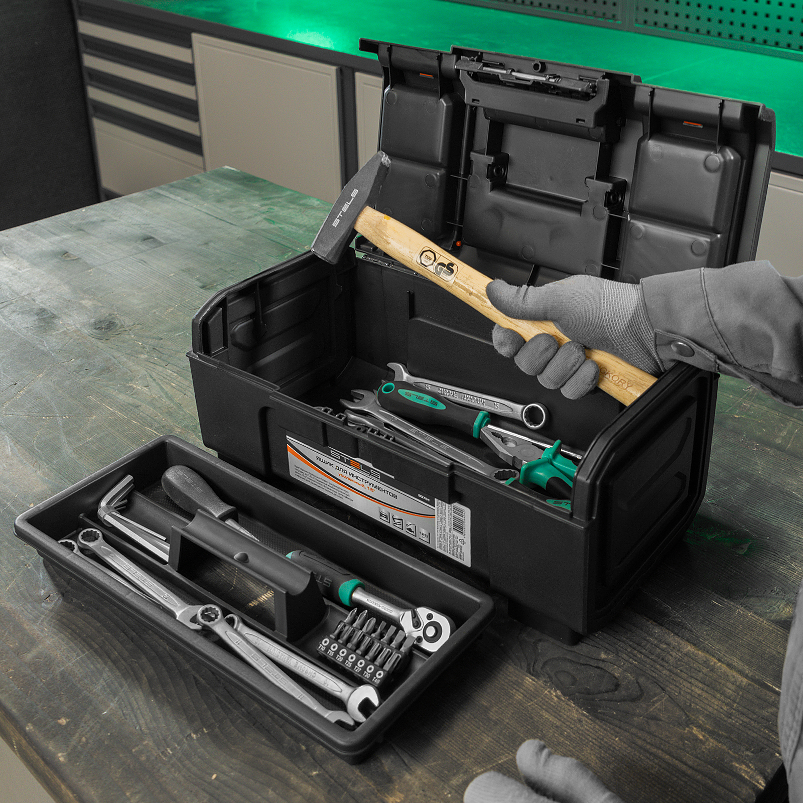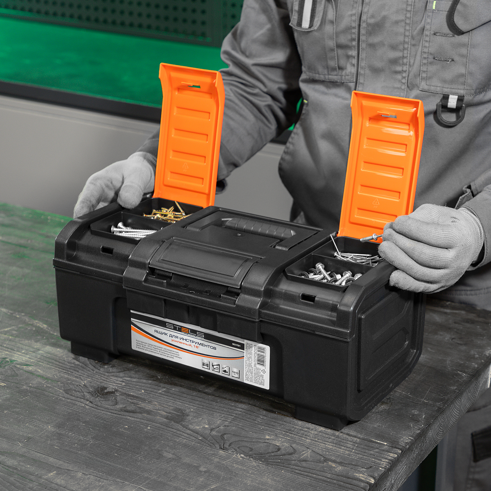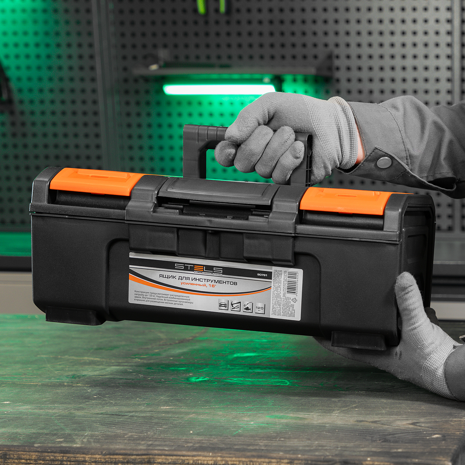Усиленный ящик для инструментов Stels 90761 длиной 16" используется для хранения и транспортировки ручного и электроинструмента, а также хозяйственных мелочей или рыболовных принадлежностей. Заменяет коробку для инструментов, а также может служить рыболовным ящиком. Пригодится дома, в поездке, а также в гараже или на даче.